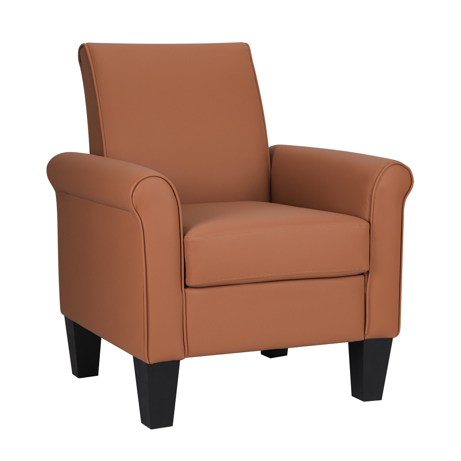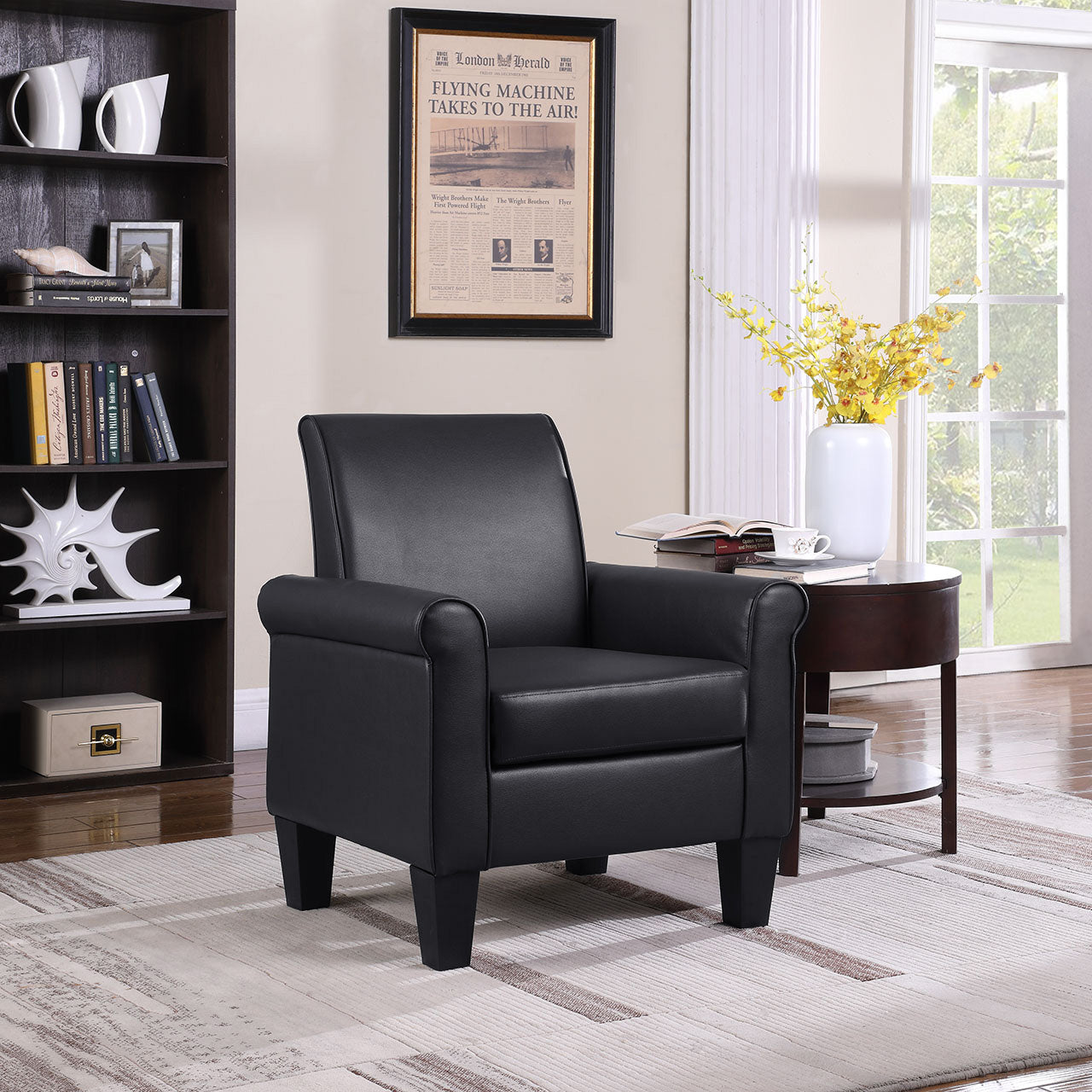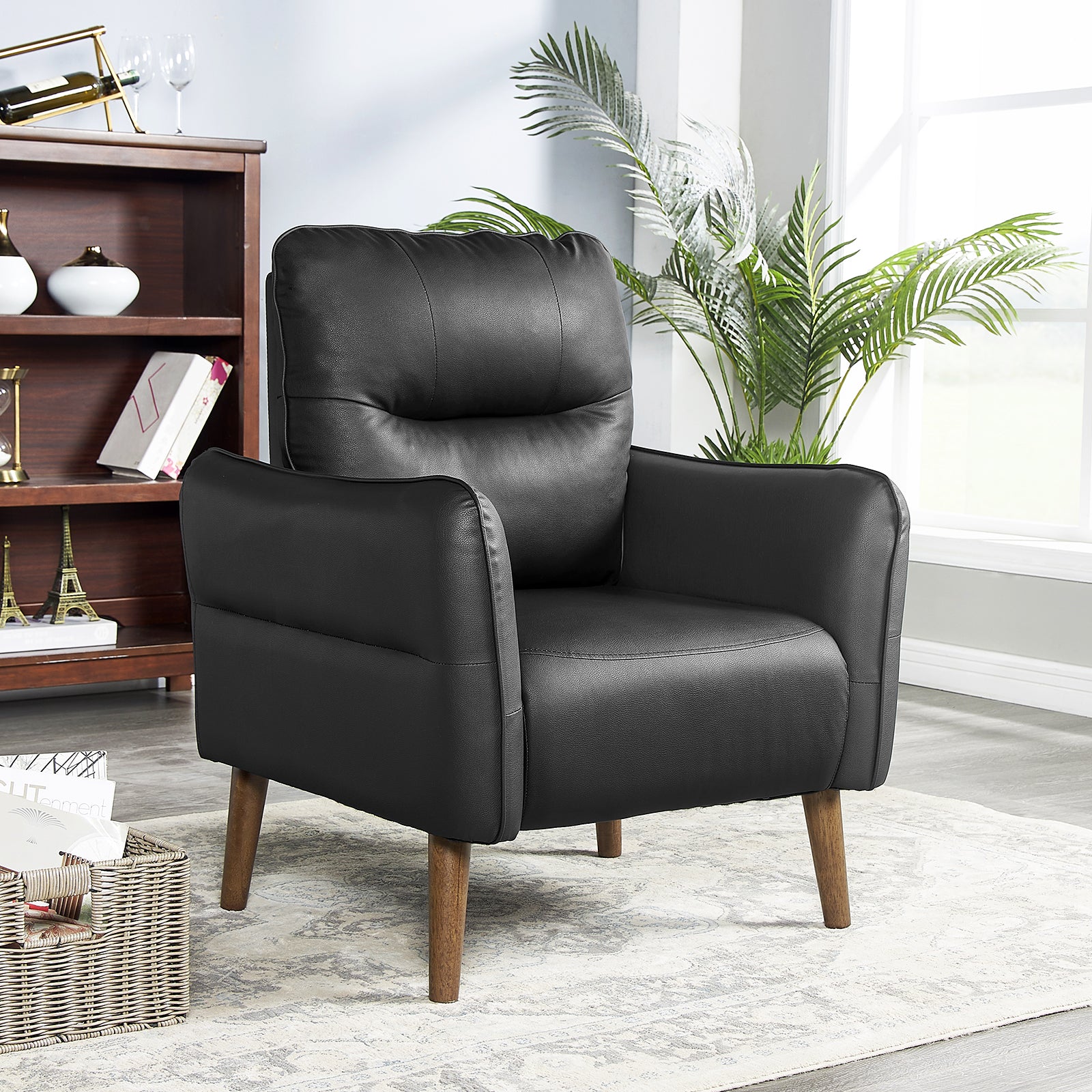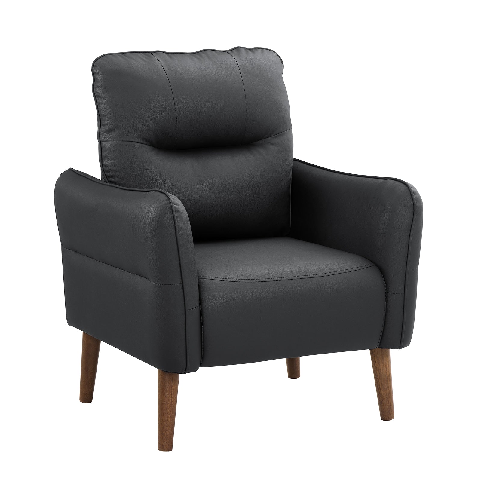 Modern Faux Leather Accent Chair Living Room Arm Chairs Comfy Single Sofa Chair Black Espresso
