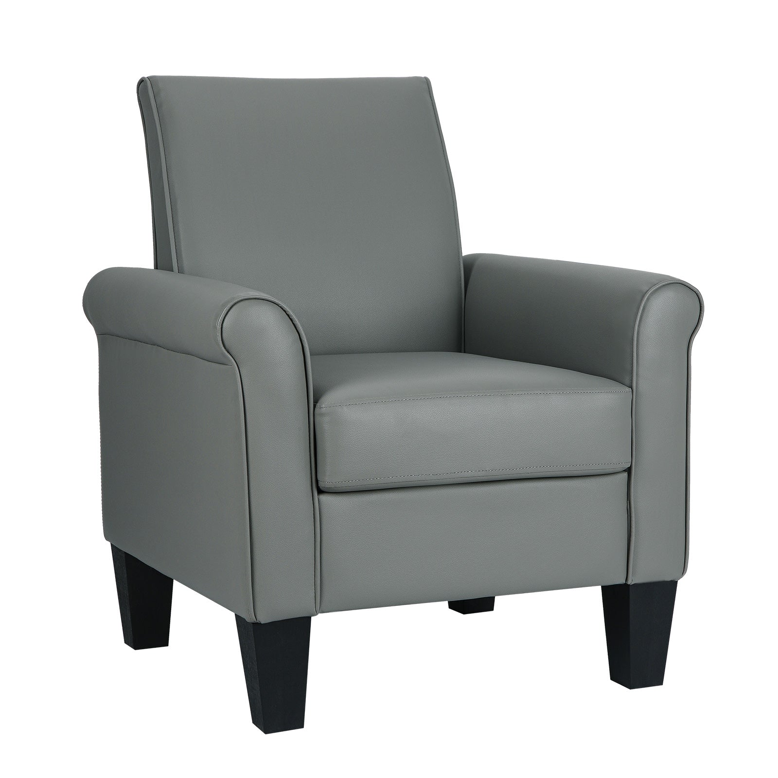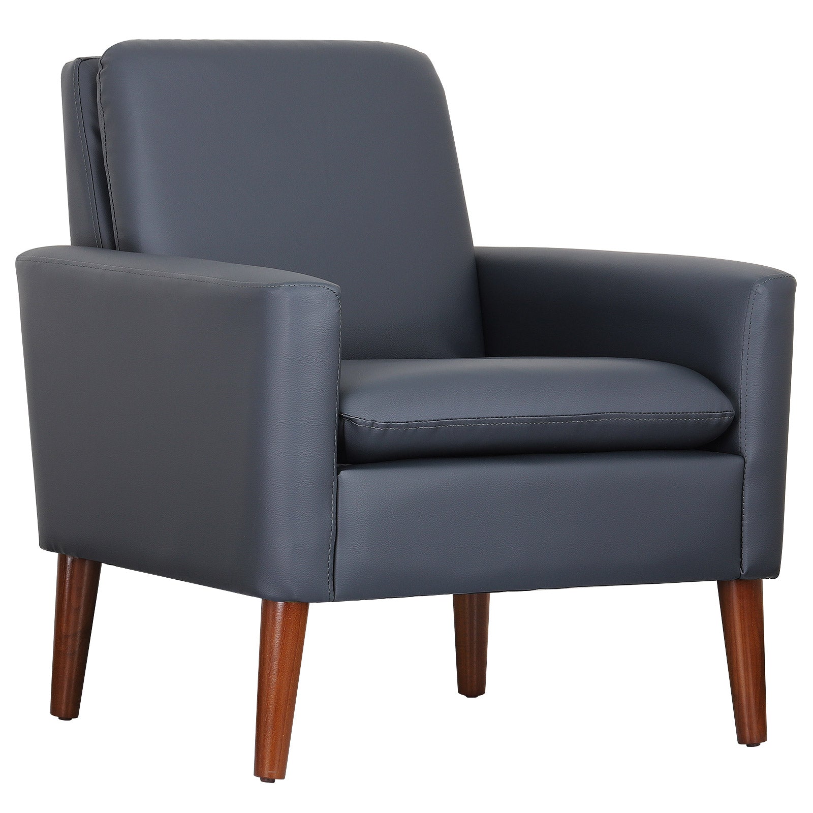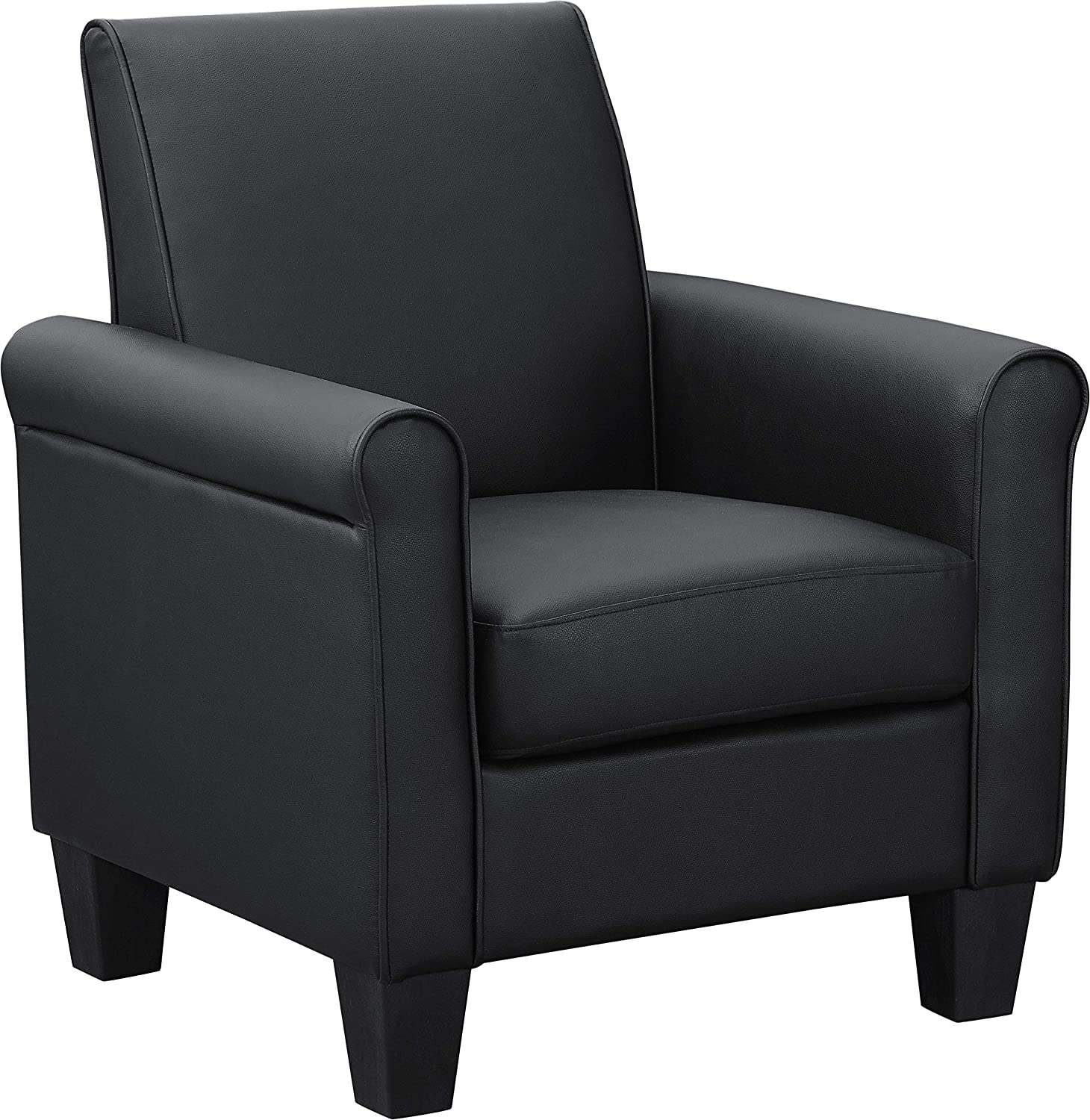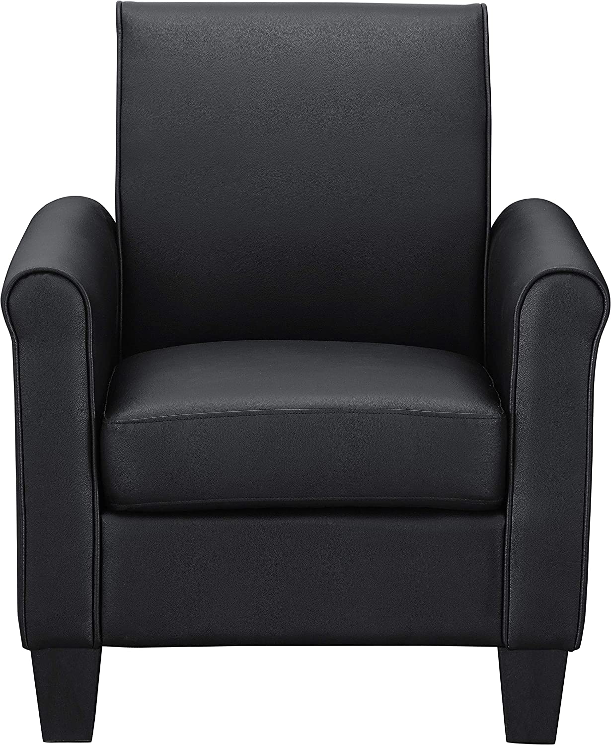 Modern Faux Leather Accent Chair Living Room Arm Chairs Comfy Single Sofa Chair Black Espresso