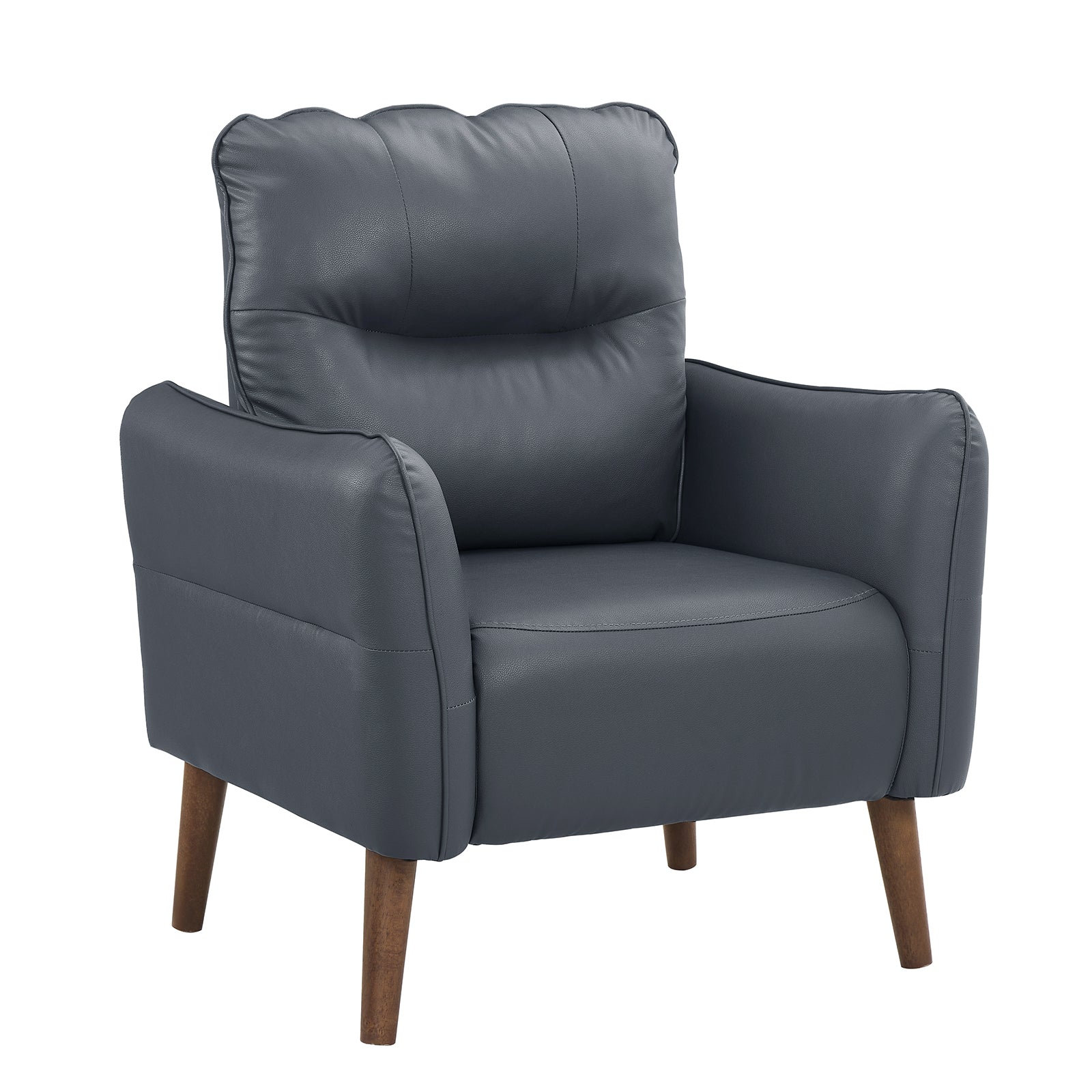 Premium Faux Leather Accent Chair with Wooden Legs — Refined Comfort, Elevated Style