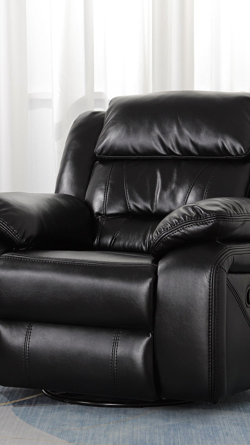 Enjoy all-day comfort in a sleek, modern package. This leather recliner chair features soft PU leather upholstery, thick high-density cushions and a smooth adjustable recline—ideal for movie nights, reading or after-work relaxation.