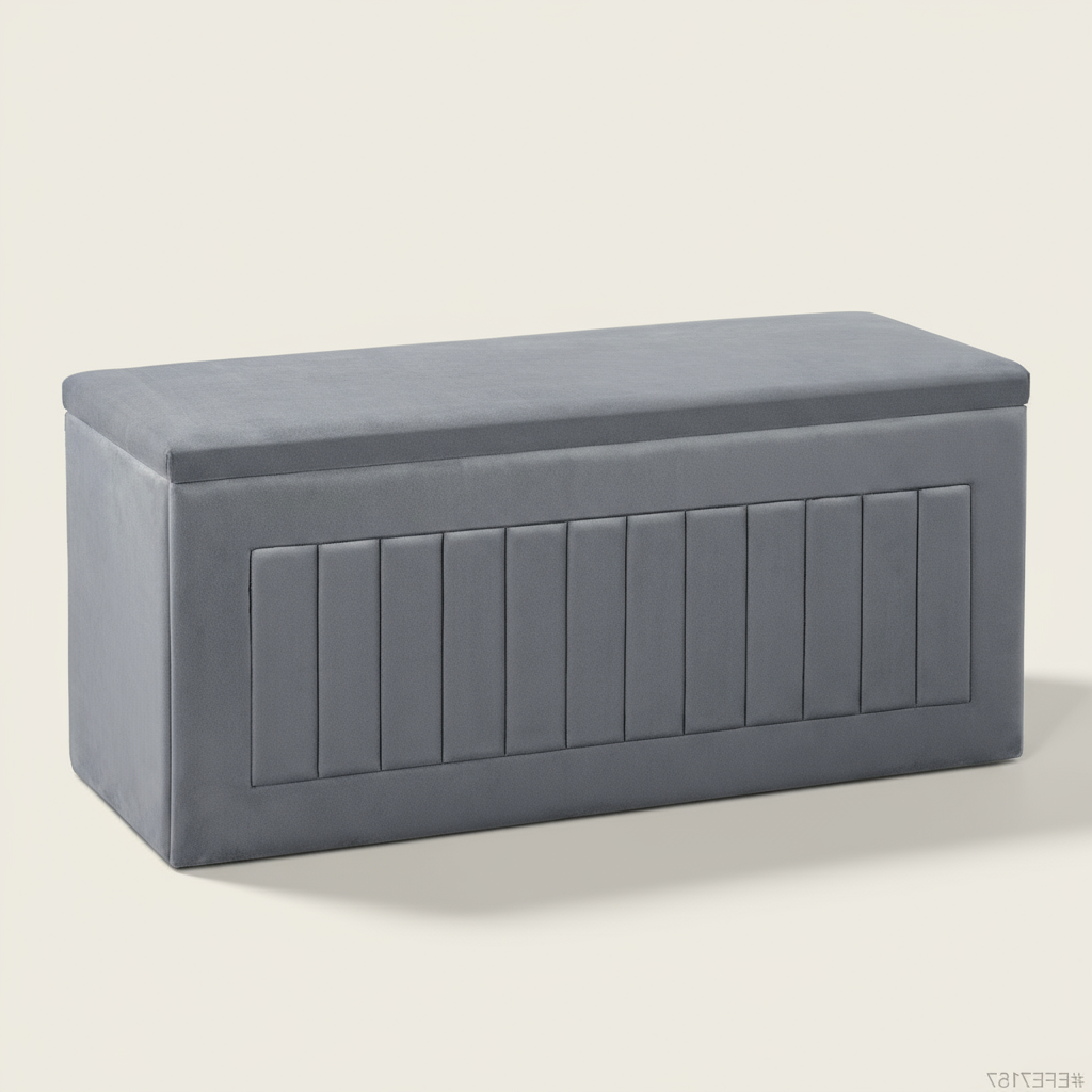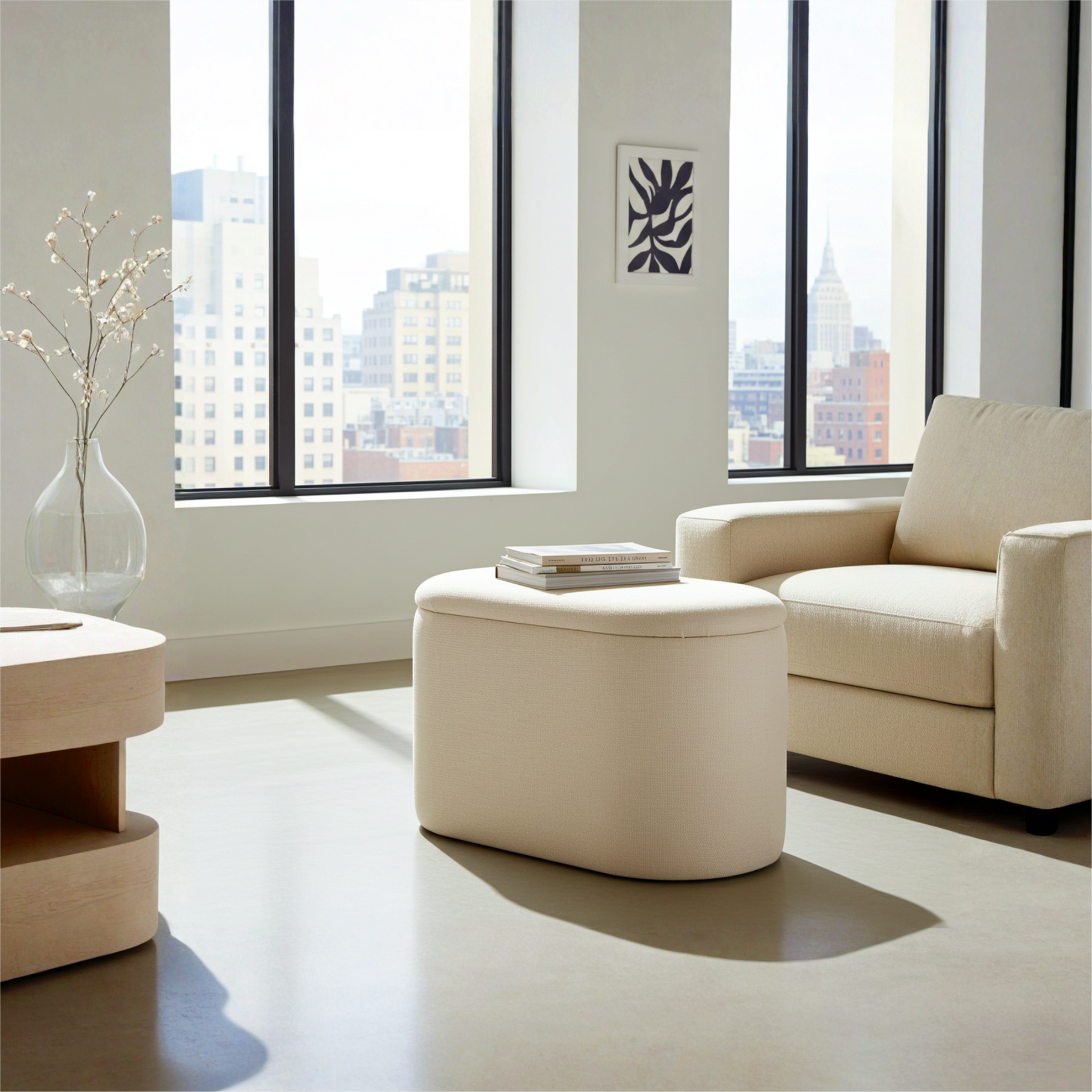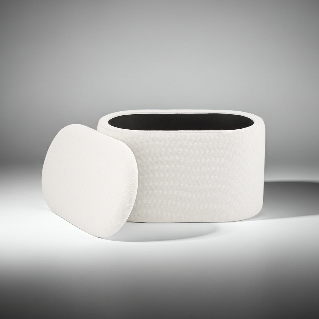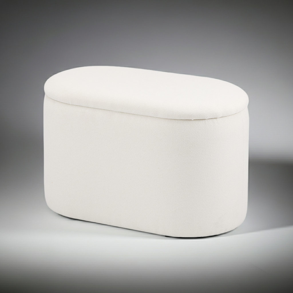 Teddy velvet storage ottoman bench in cream with minimalist design