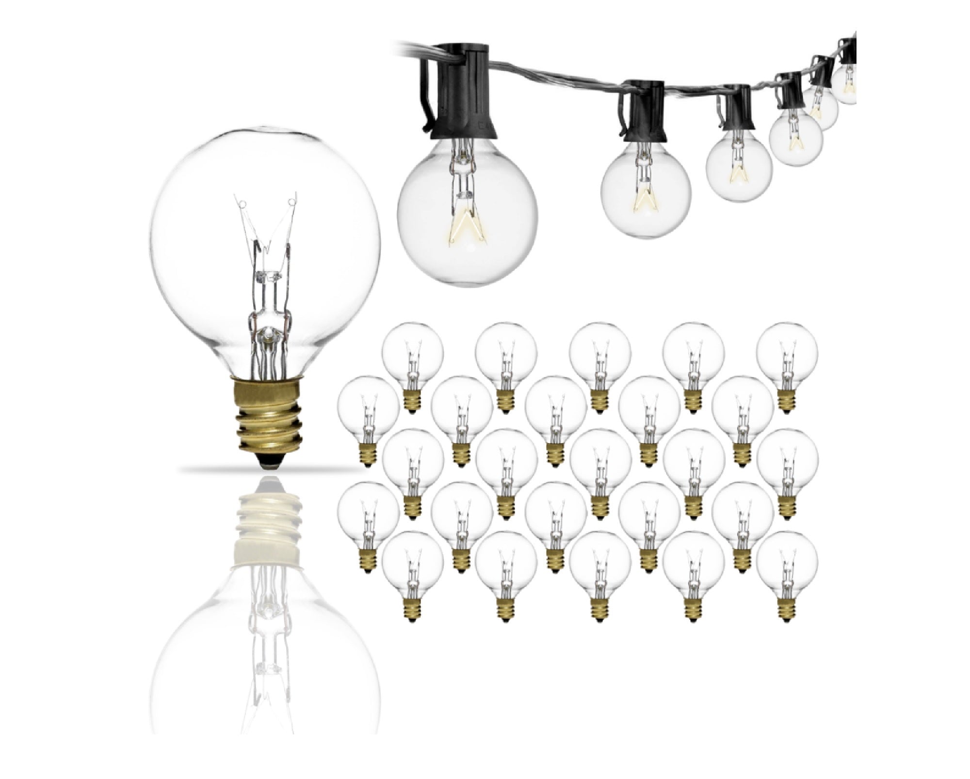 25 Pack G40 Globe Warm White String Lights 25 Pieces End to End Connectable