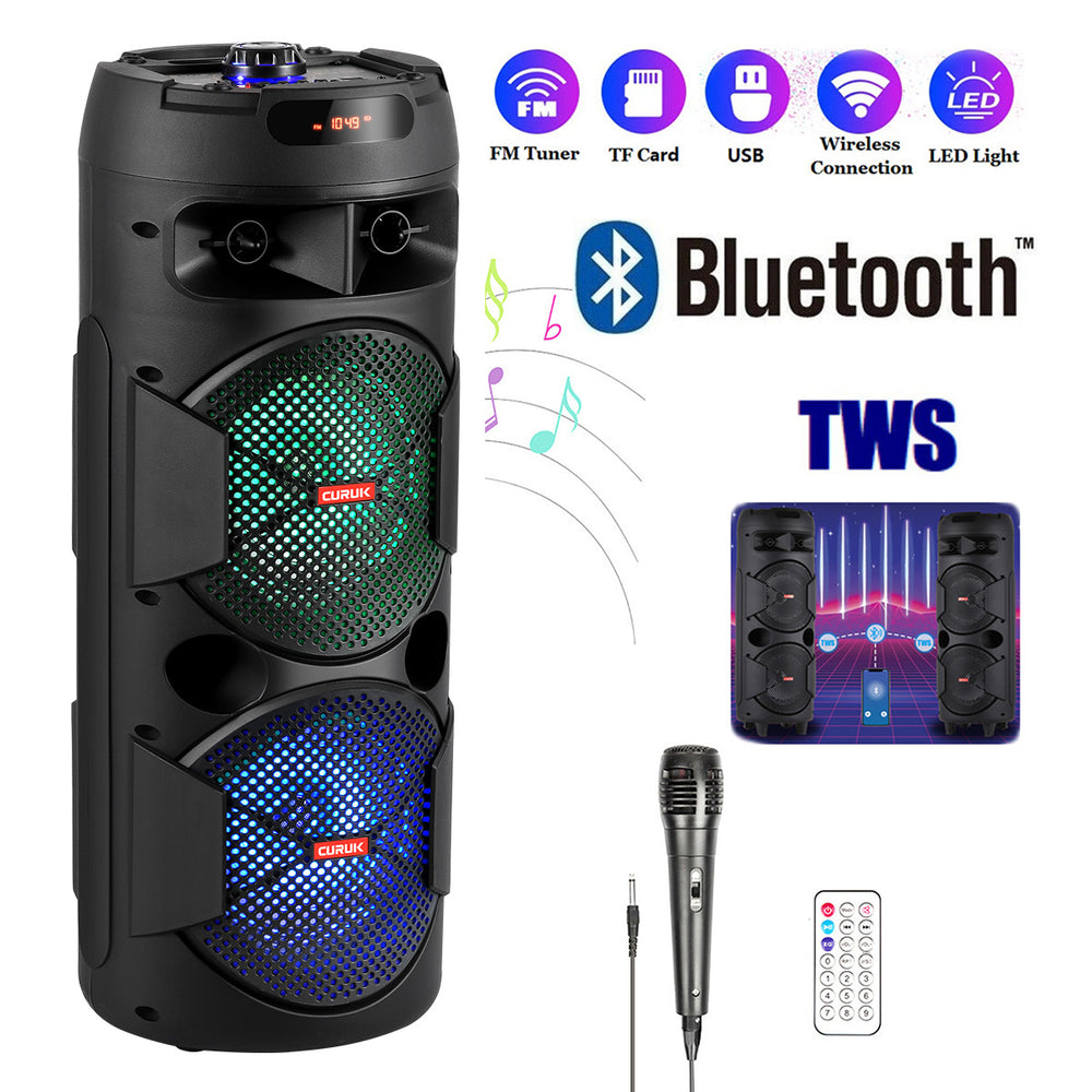 CURUK 4000W Portable Bluetooth Speaker Dual 6.5" Woofer Sound System Party DJ W/Mic