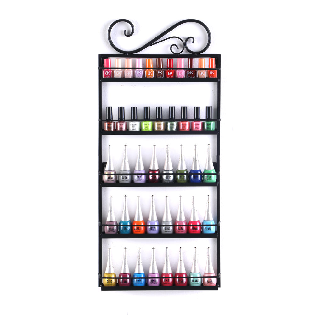 - ✔ Features 5 Shelves 49.5 L X 26 H(IN) 5 in high for each tiers holds every brand size/shape of nail polish/essentials Great for nail polish/essential oils collection.