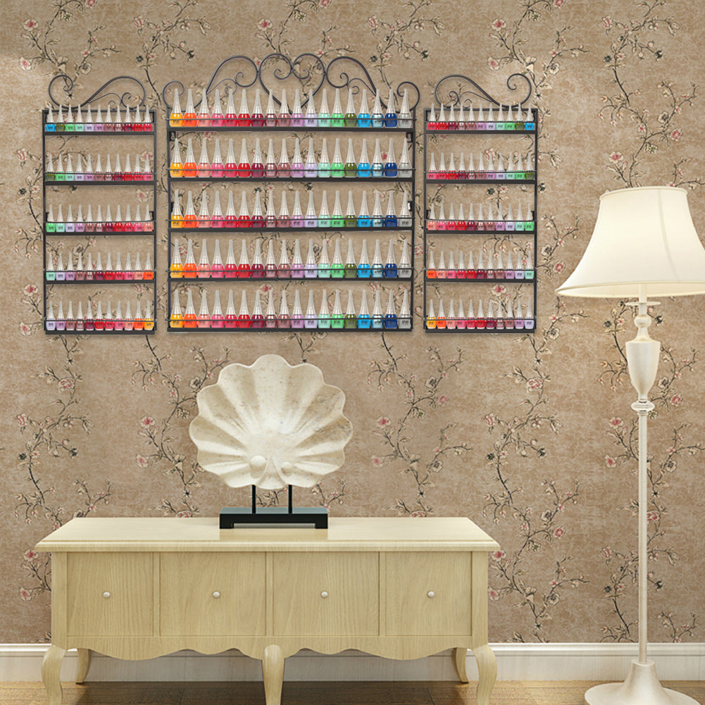 Nail Polish Organizer Wall Mount Rack Hold 200 Bottles Nail Polish Essential Oil Storage Display Holder Shelf 3 Pcs Included Black