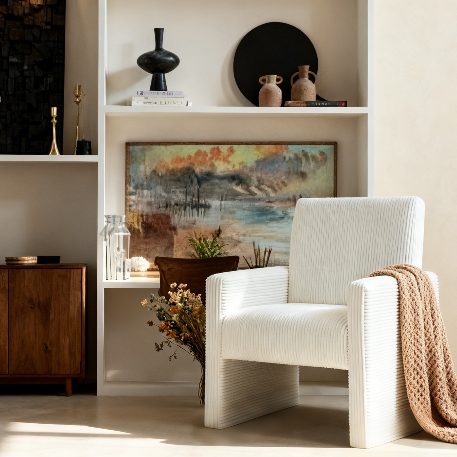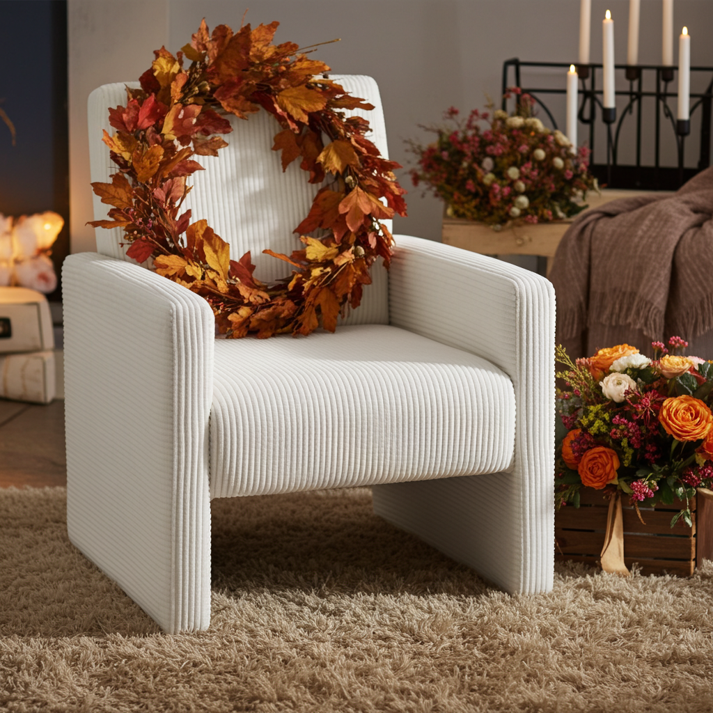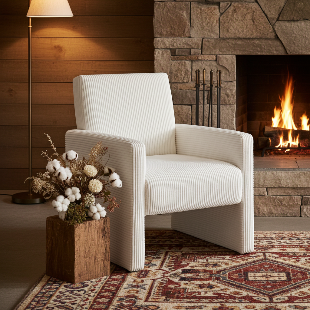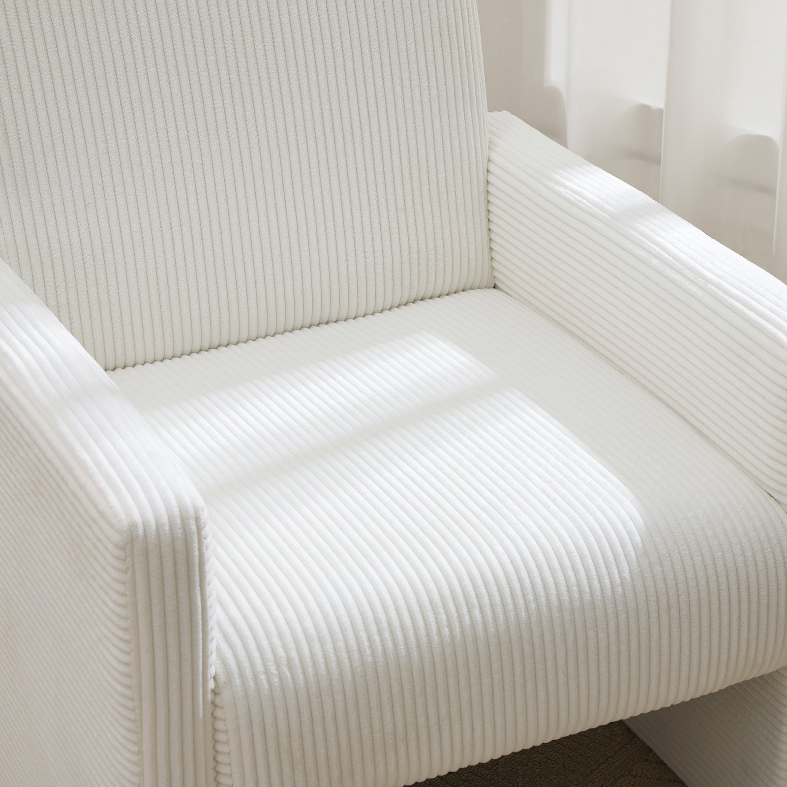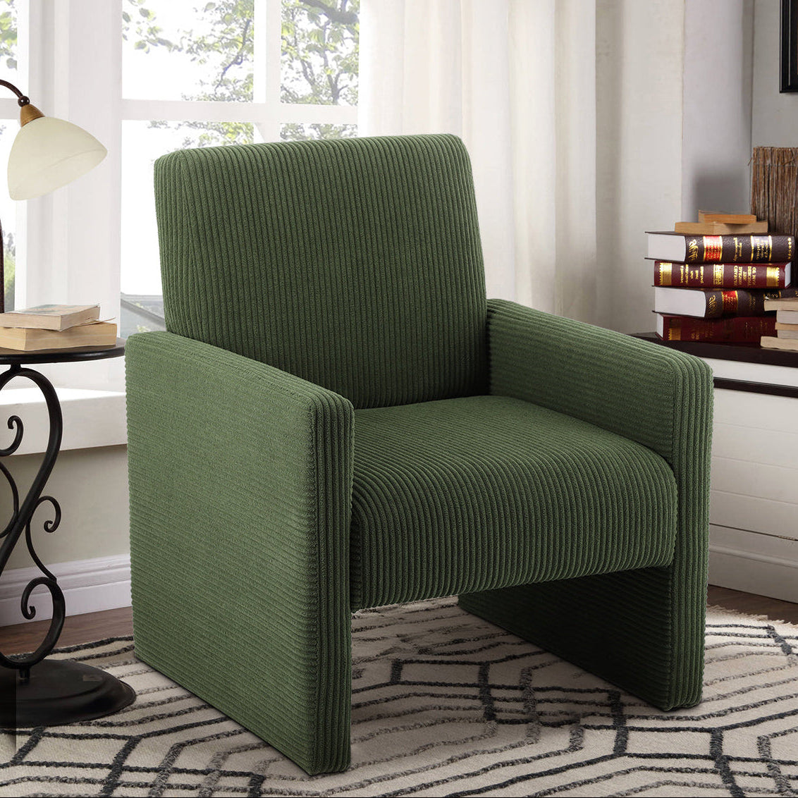 Bring cozy texture and flexible design to your reading nook or living room with this modern corduroy accent chair. The 28" width fits small spaces while the ribbed corduroy adds a warm, tactile look. Removable armrests make cleaning and upkeep easier and let you adapt the style to your space. A solid wood frame provides lasting stability.
