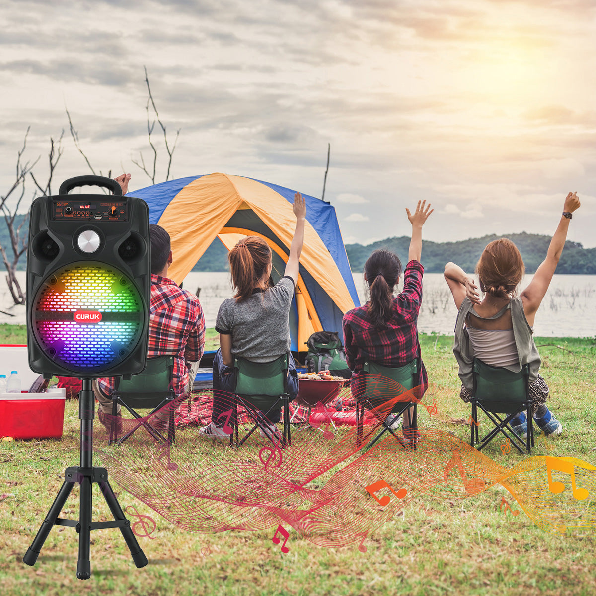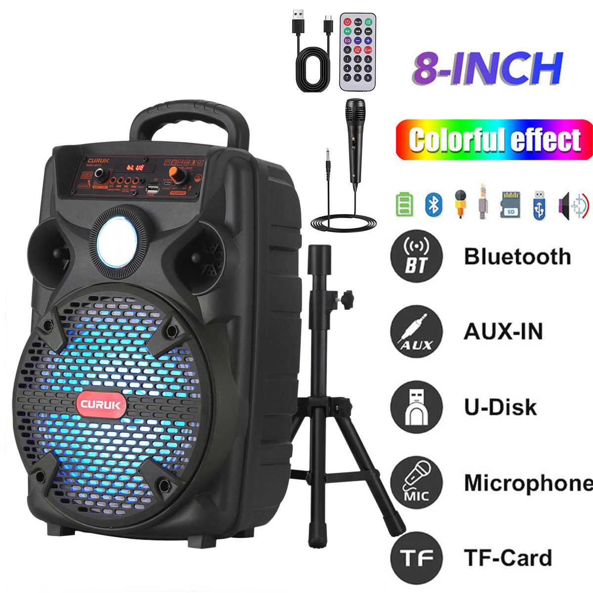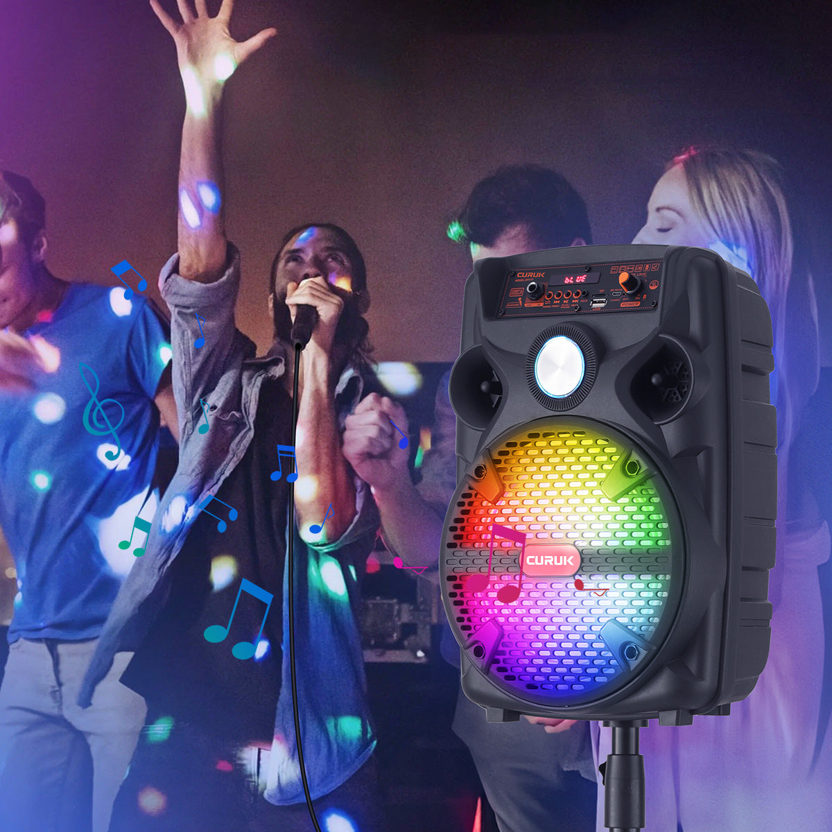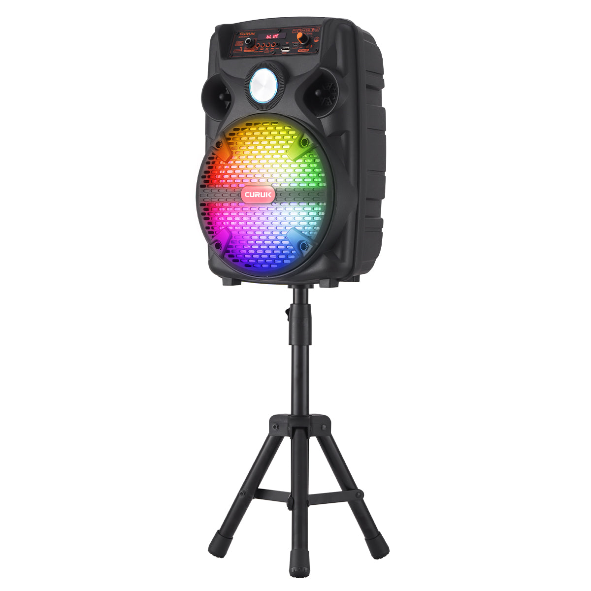 CURUK 1100W Portable Bluetooth Speaker for Party with Stand 8" Subwoofer Sound System +Mic