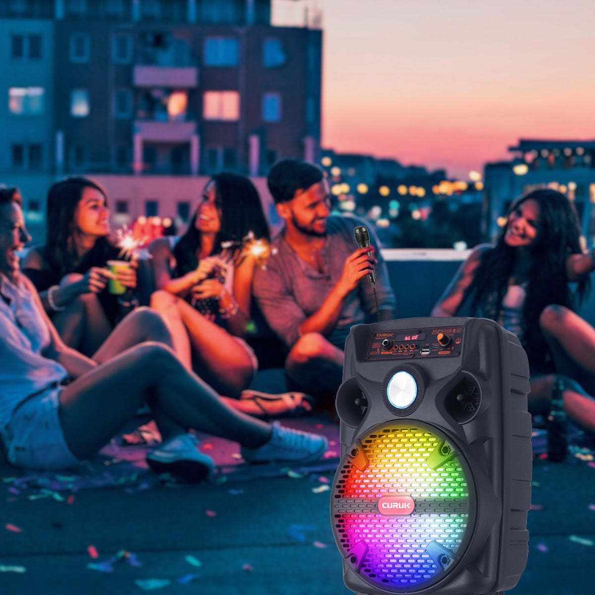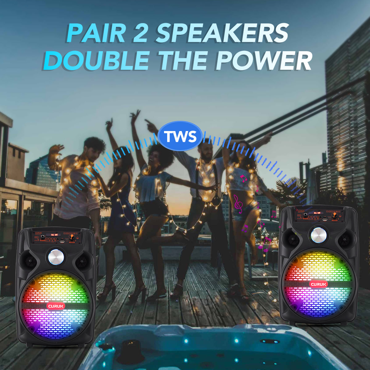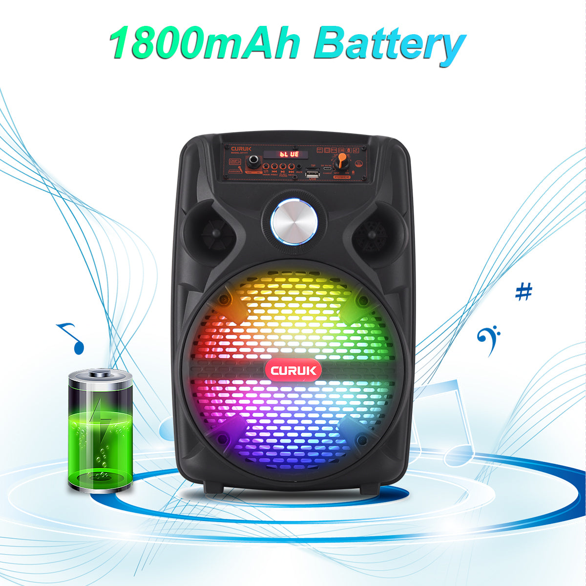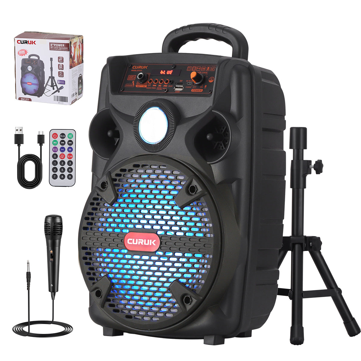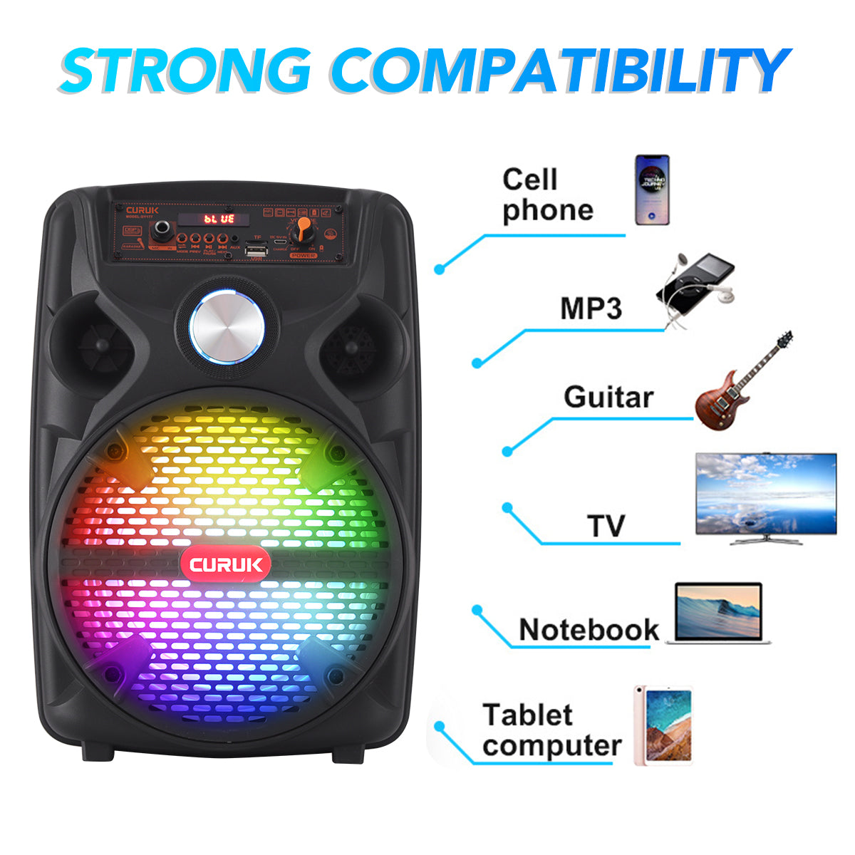 CURUK 1100W Portable Bluetooth Speaker for Party with Stand 8" Subwoofer Sound System +Mic