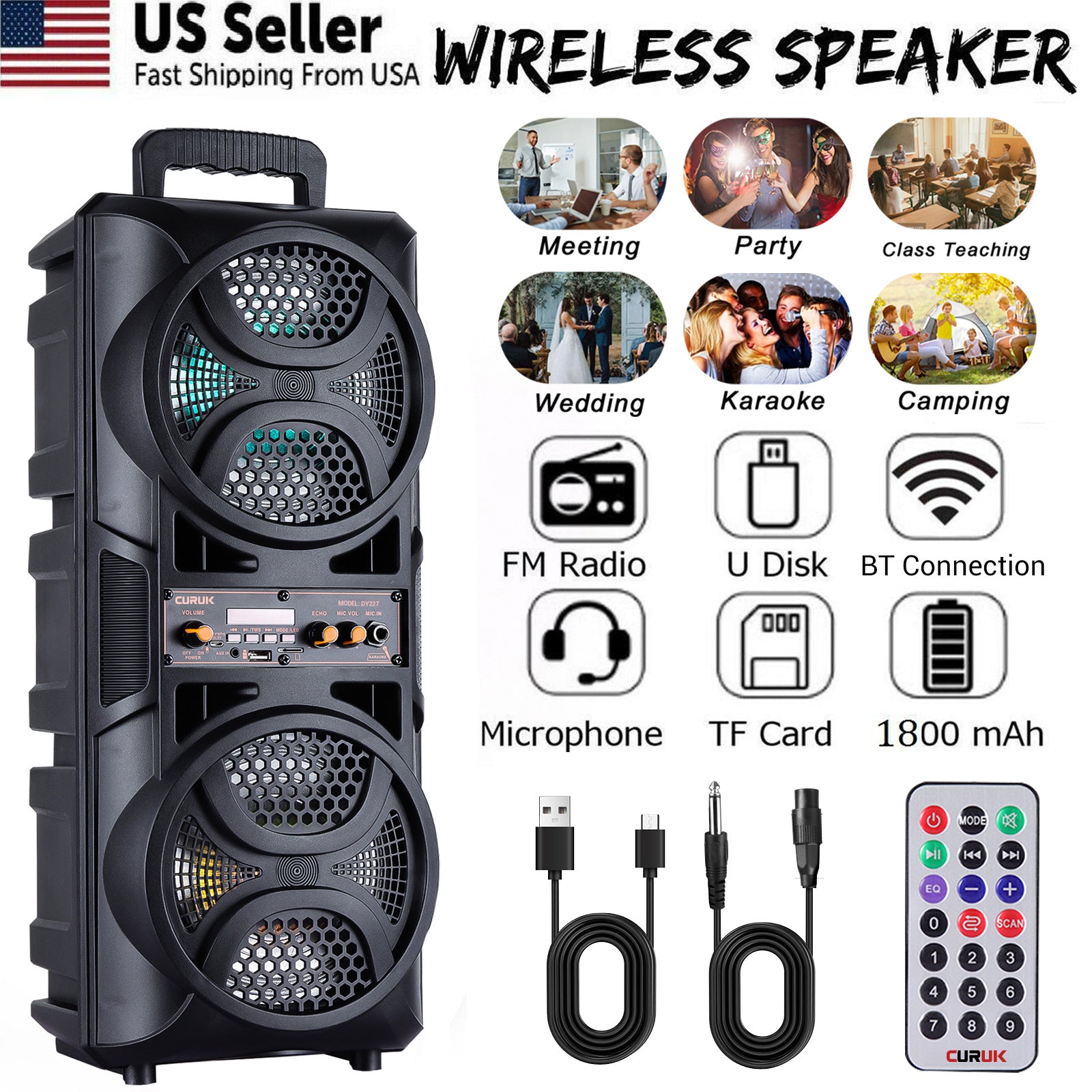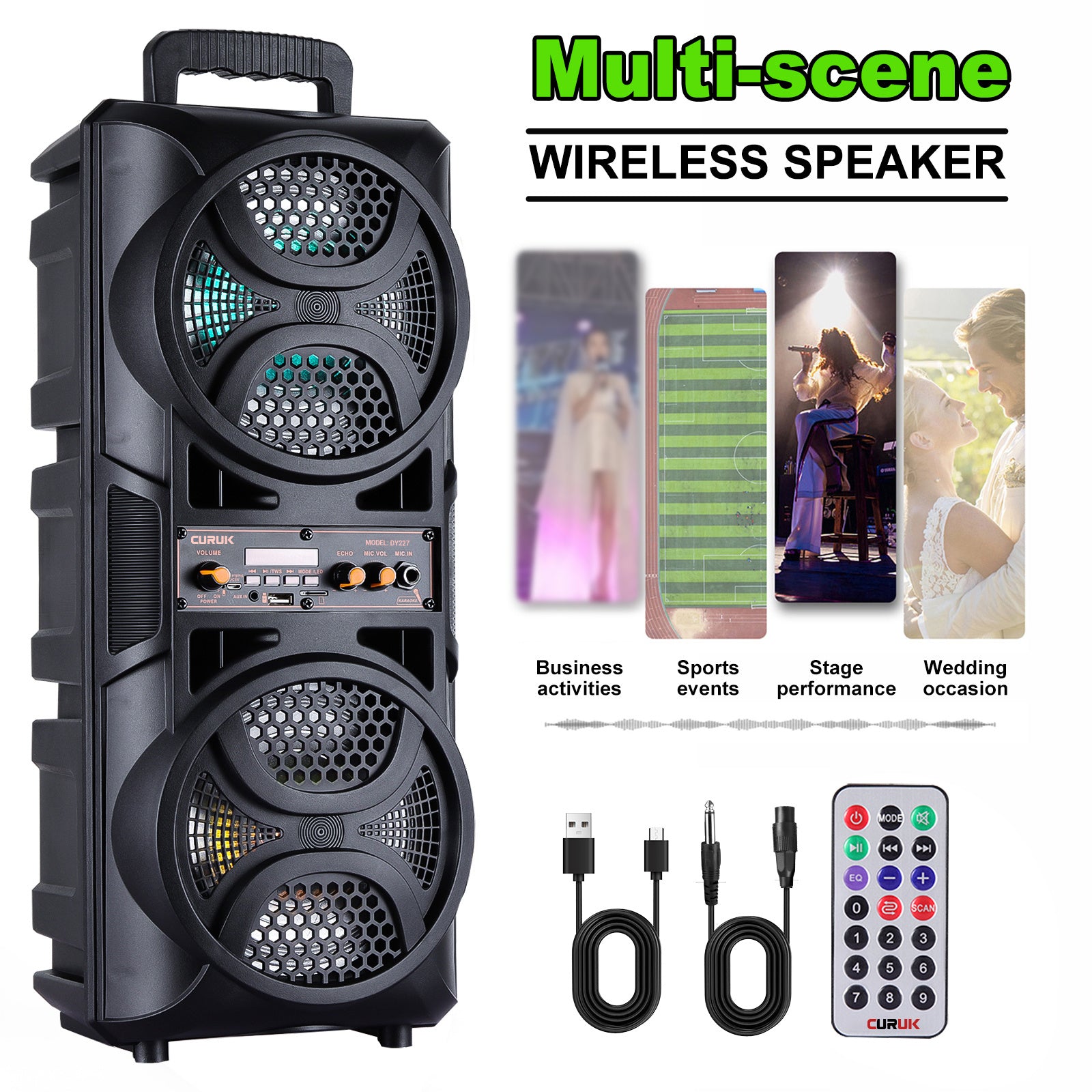 CURUK 3000W Wireless Bluetooth Speaker Outdoor Party Sound System Heavy Bass Subwoofer