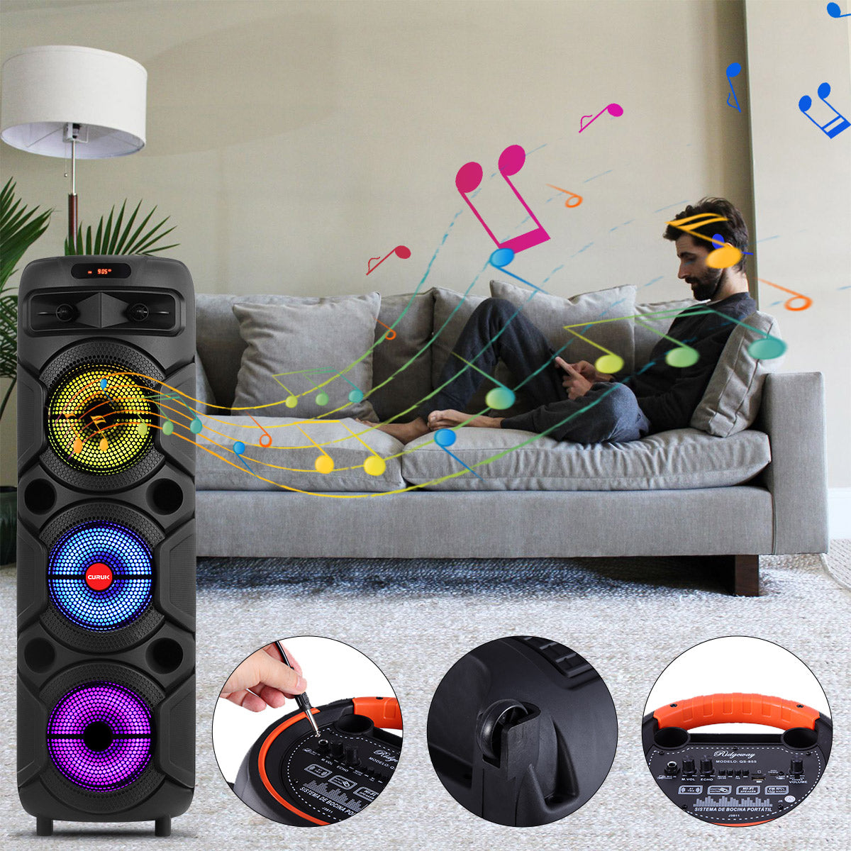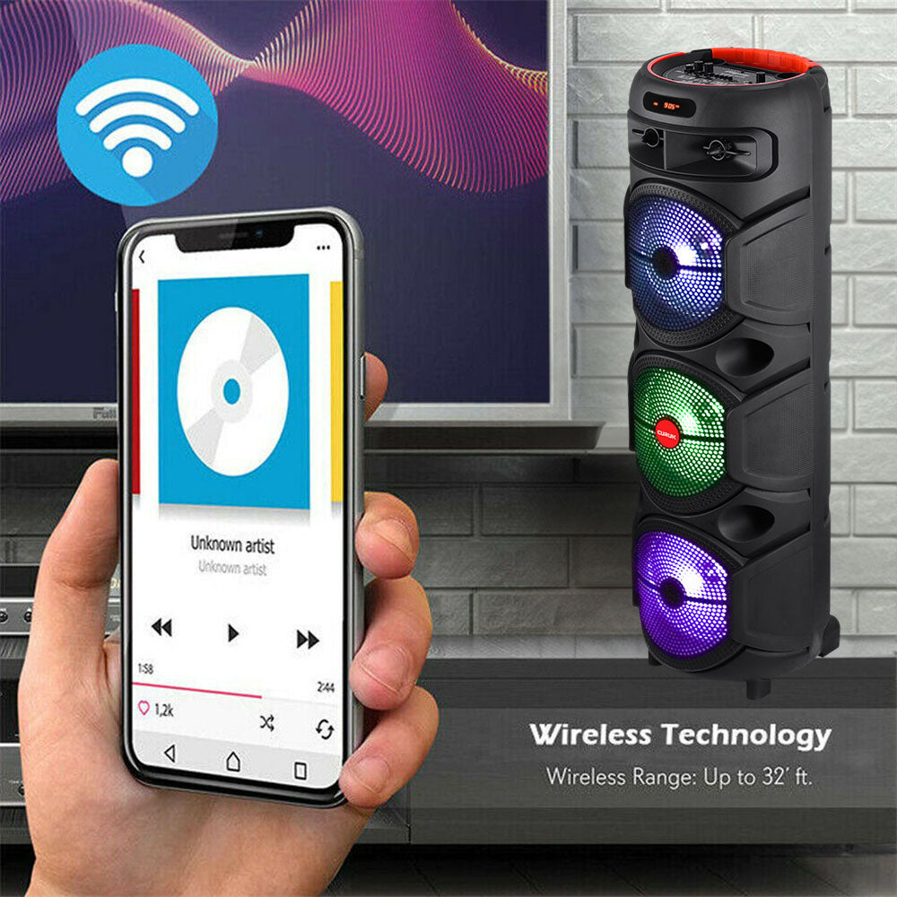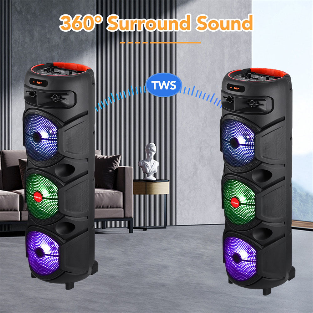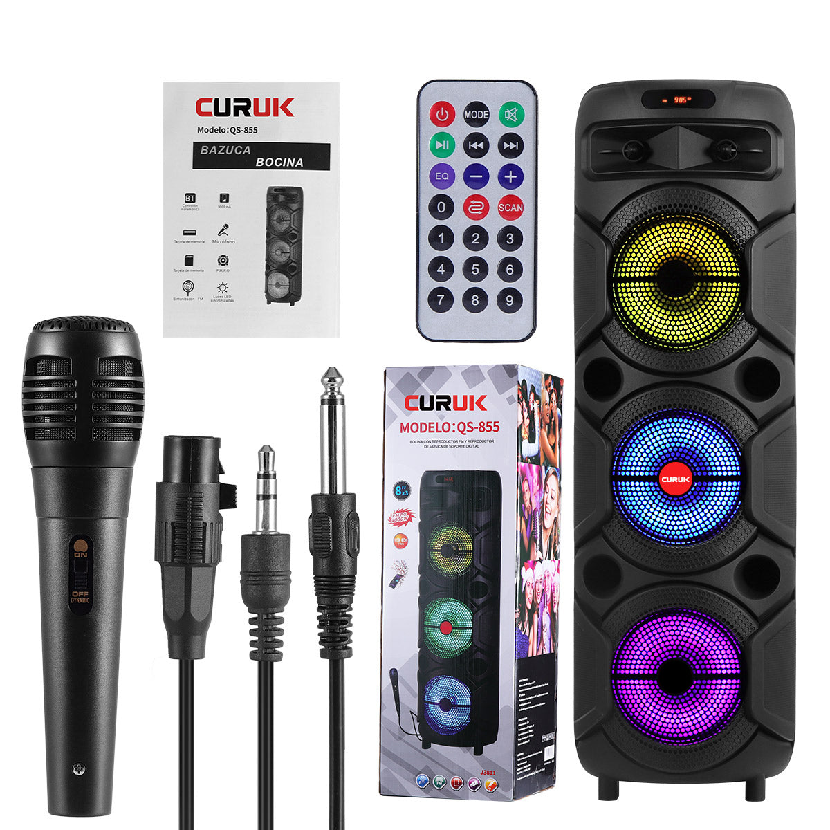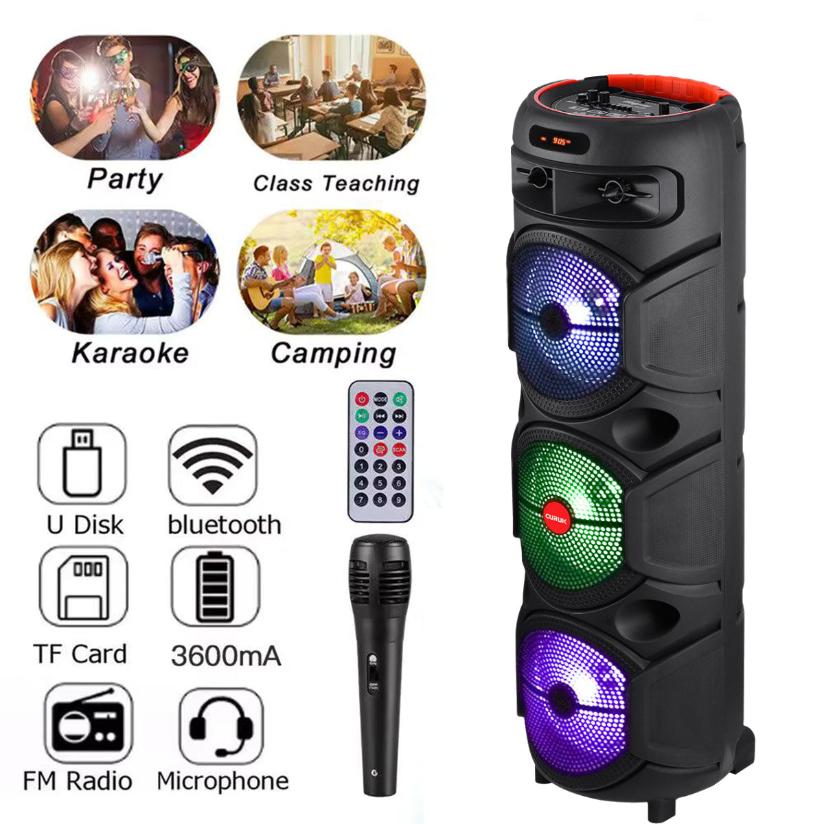 CURUK 4000W Bluetooth Speaker Portable 3*8"Subwoofer Heavy Bass Party DJ System Mic