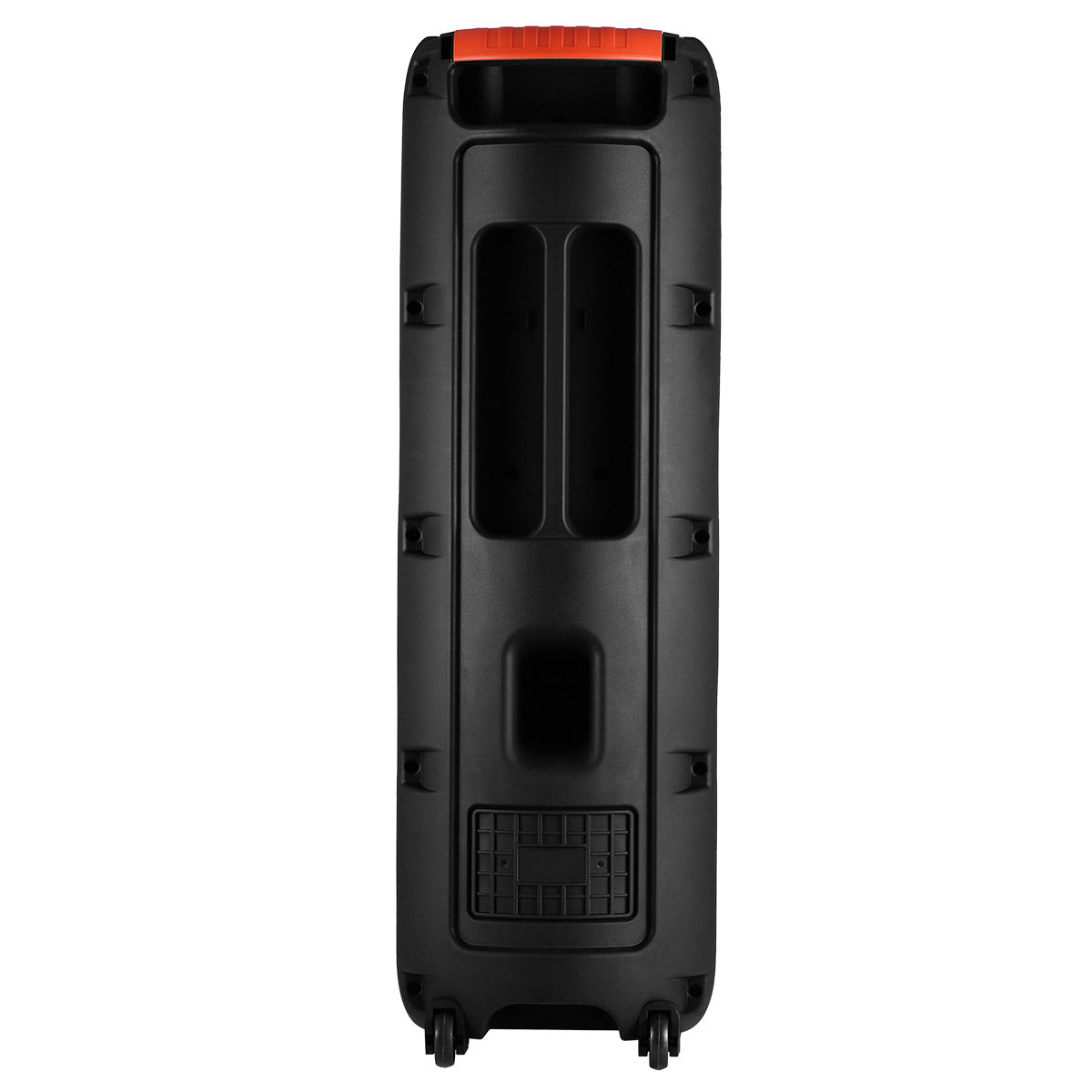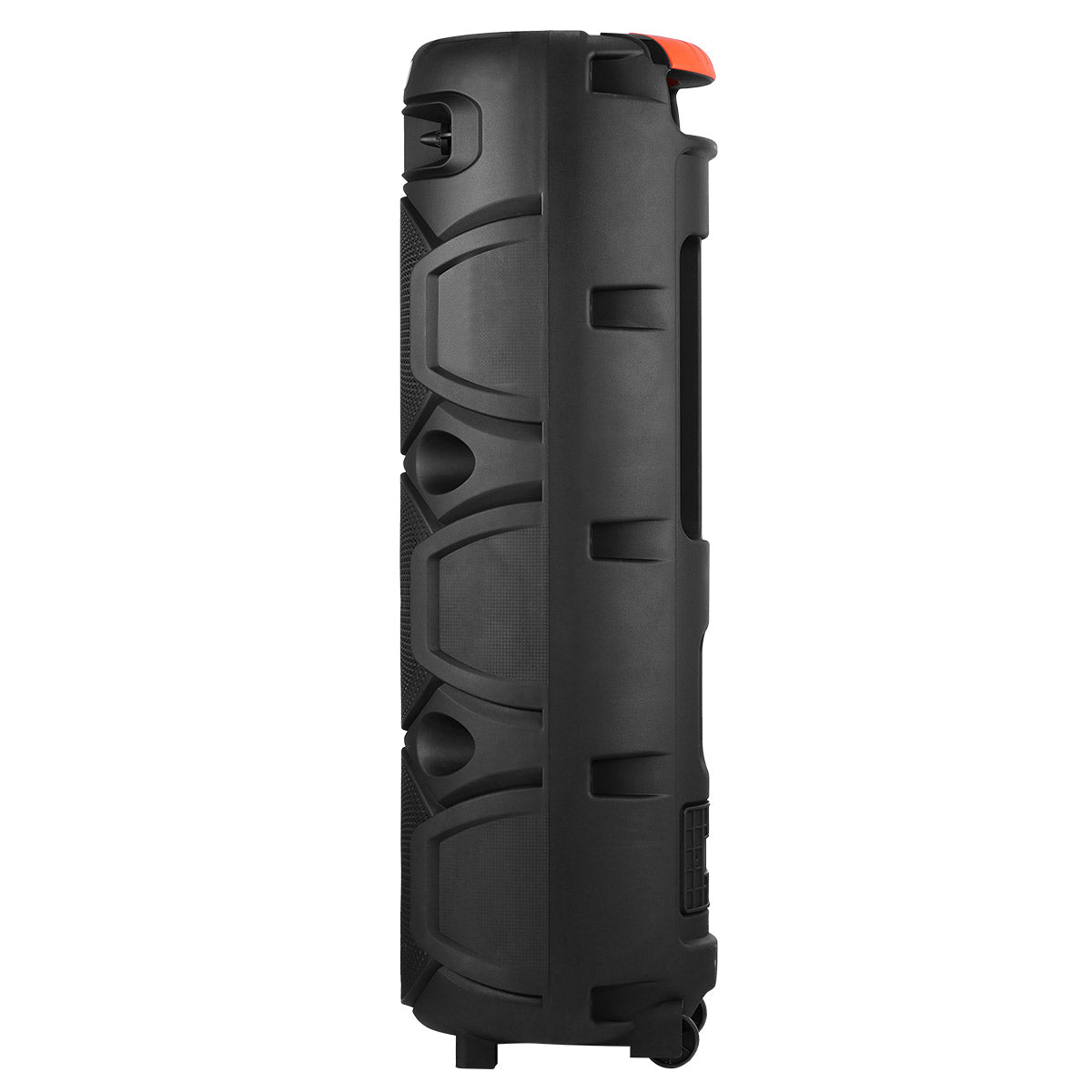 Built-in 3000mAh rechargeable battery offers up to more than 2 hours of playtime, with heavy-duty top handle and telescopic carrying handle, you're free to take this speaker anywhere you go and throw up a party.