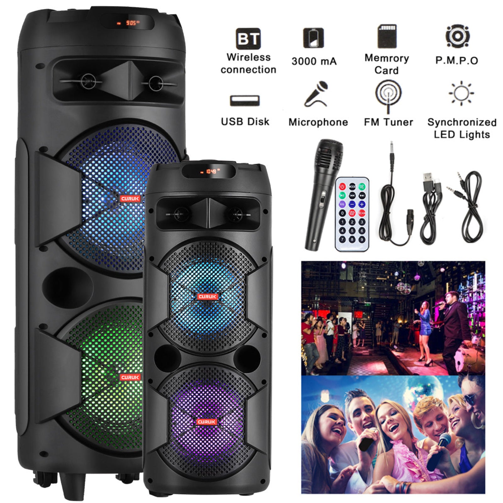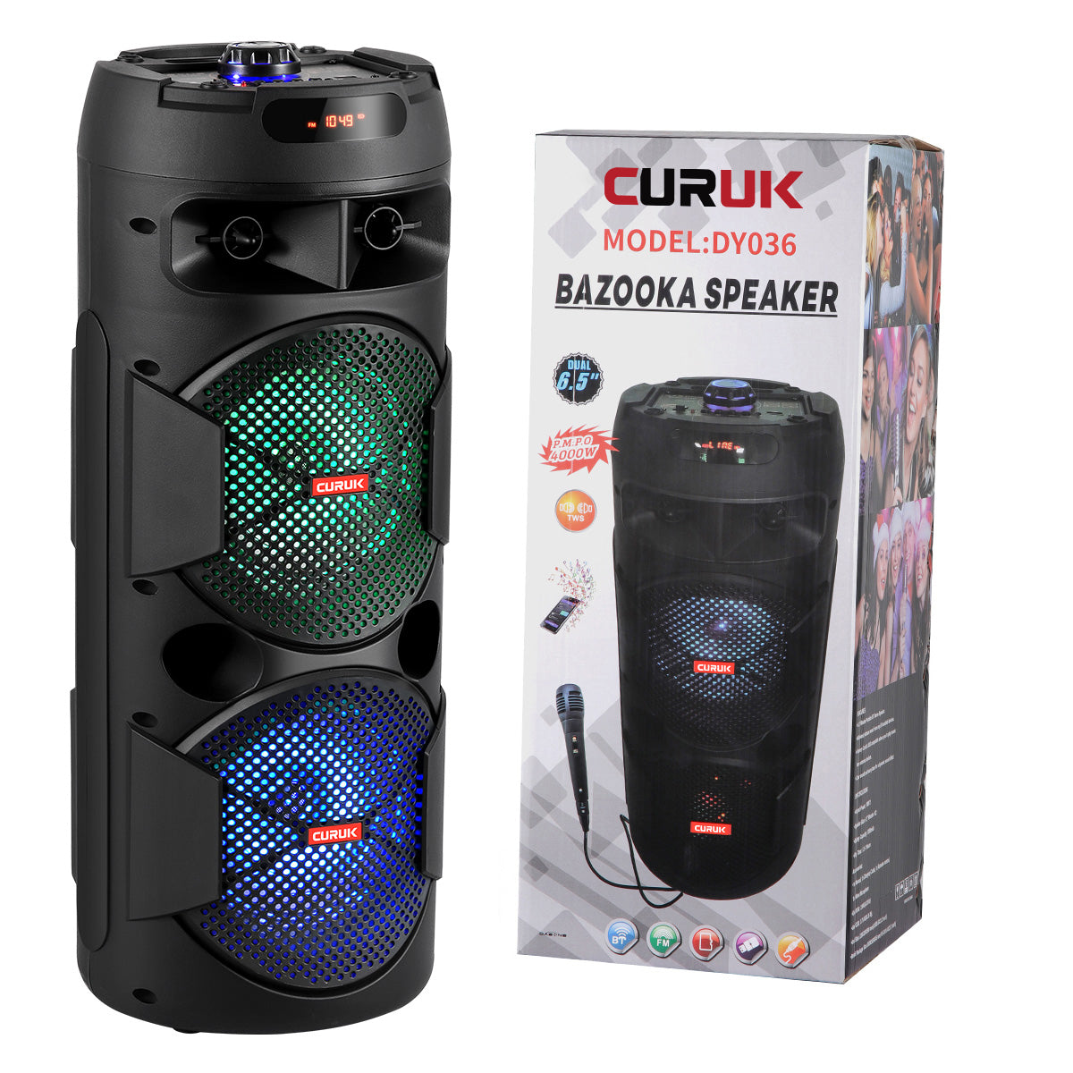 CURUK 6000W Portable Bluetooth Speaker Subwoofer Heavy Bass Sound System Party + Mic