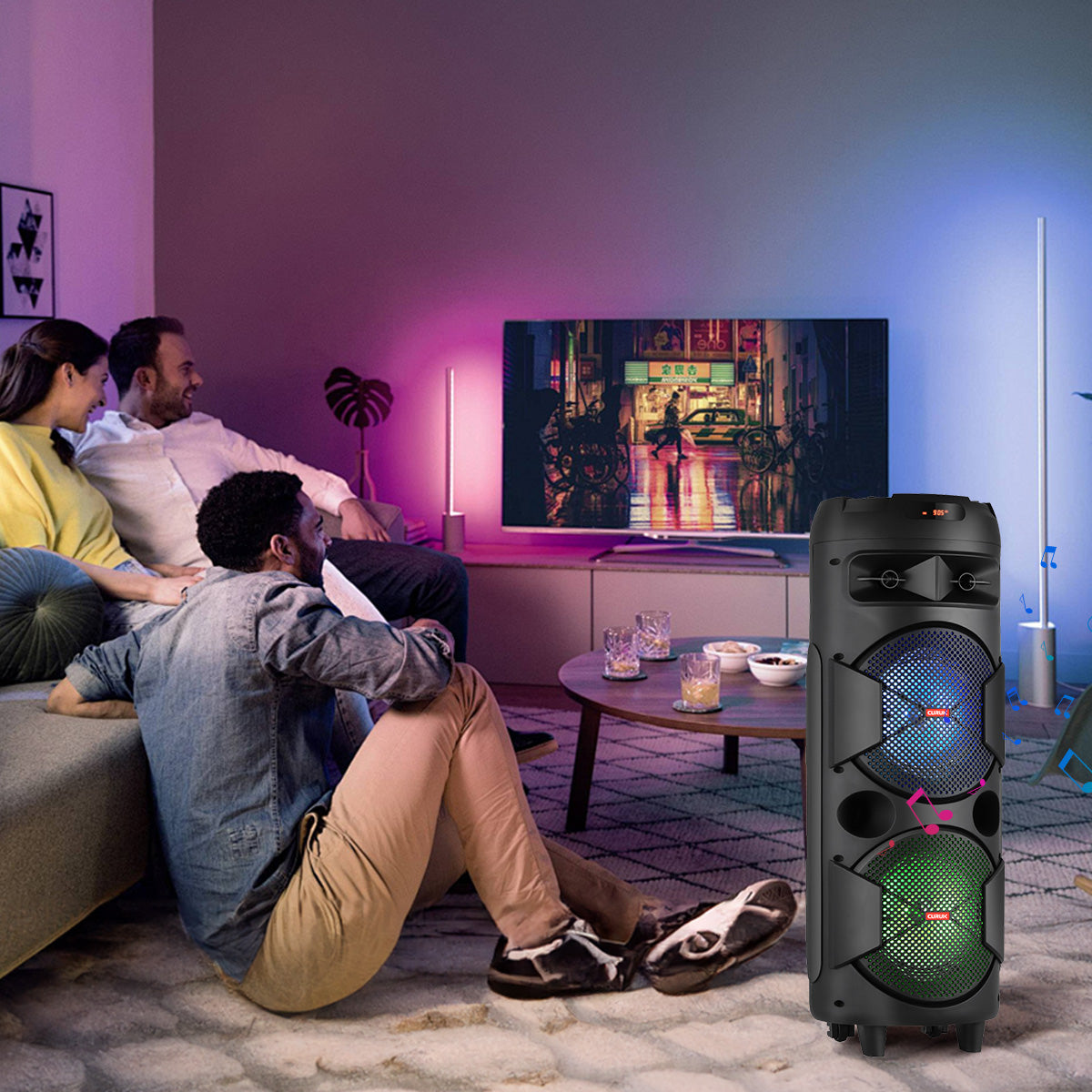 Dual 8"/6.5" Speakers : Enjoy powerful sound with the speaker's 8"/6.5" speakers, delivering rich and clear audio that fills the room. Whether it's your favorite tunes or energetic beats, the speaker ensures an immersive listening experience.