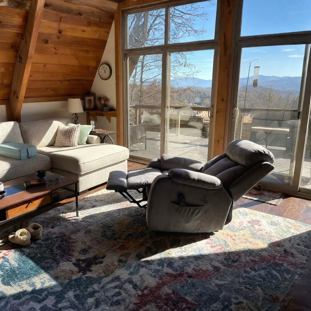 - Electric recline + lift assist — Glide from upright to fully reclined or gently lifted with the touch of a button.