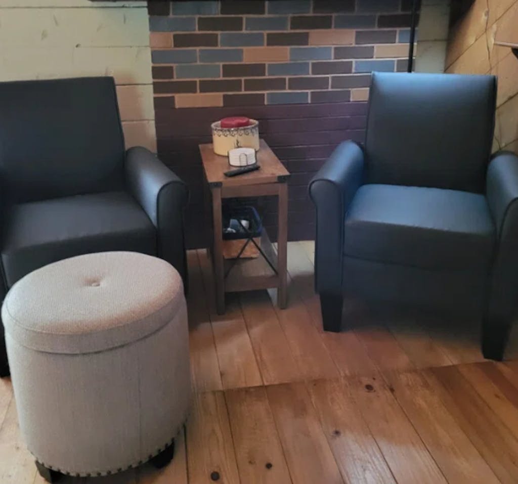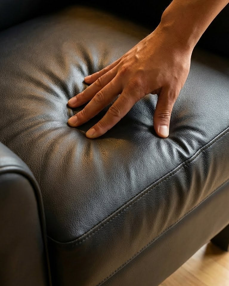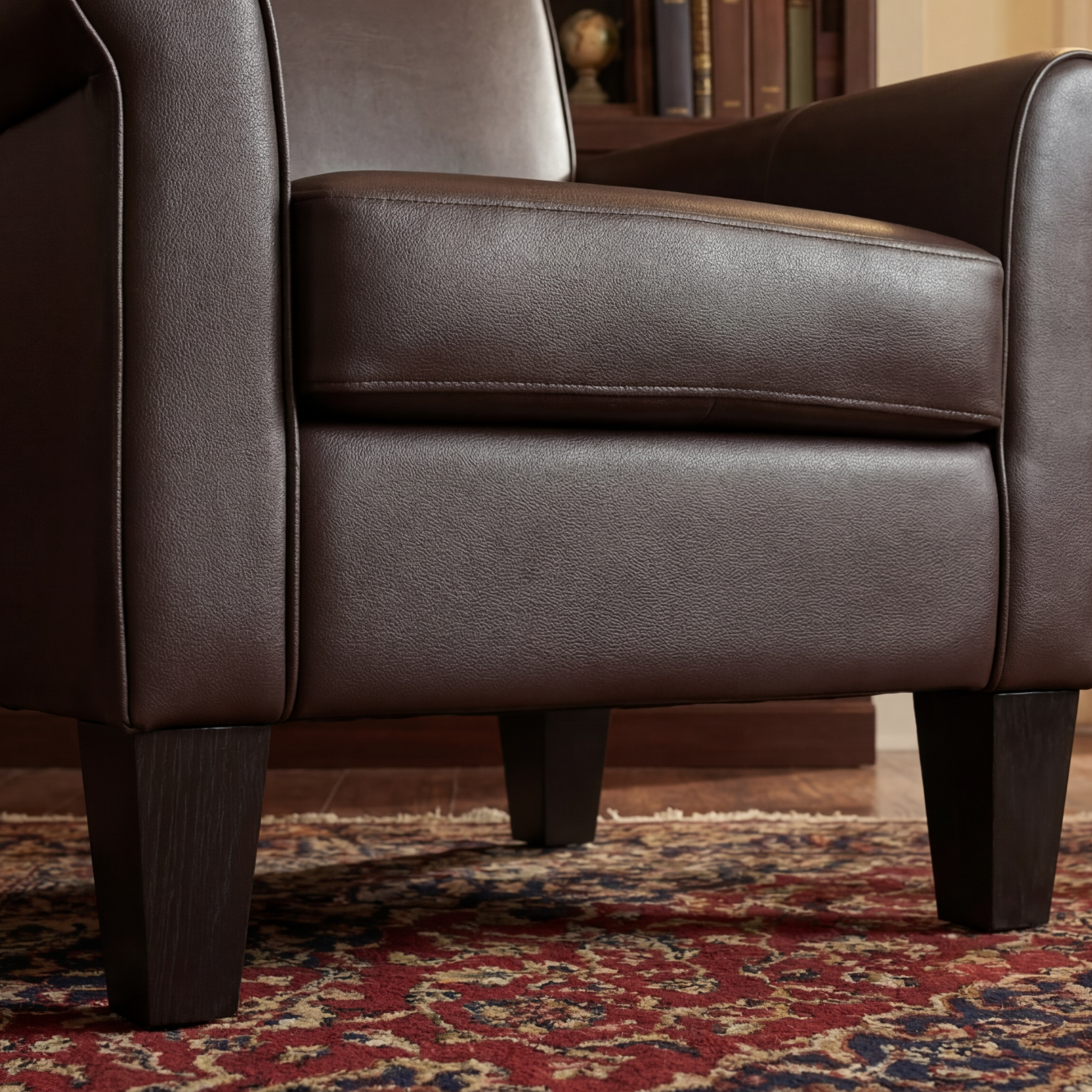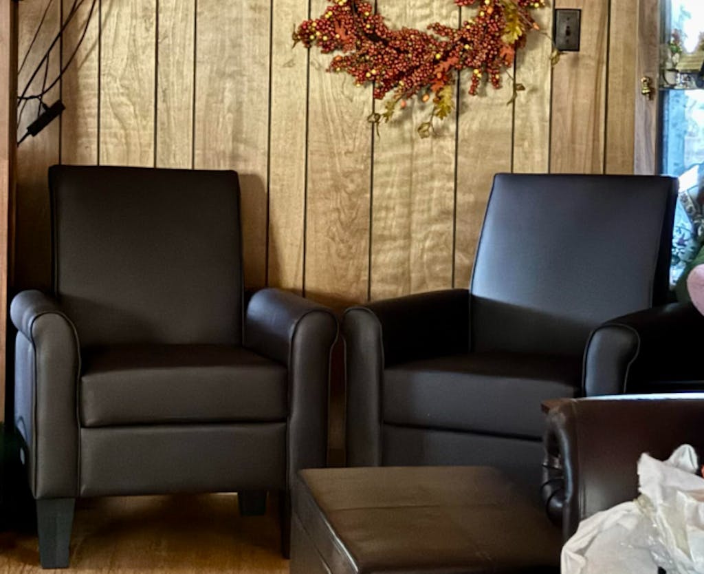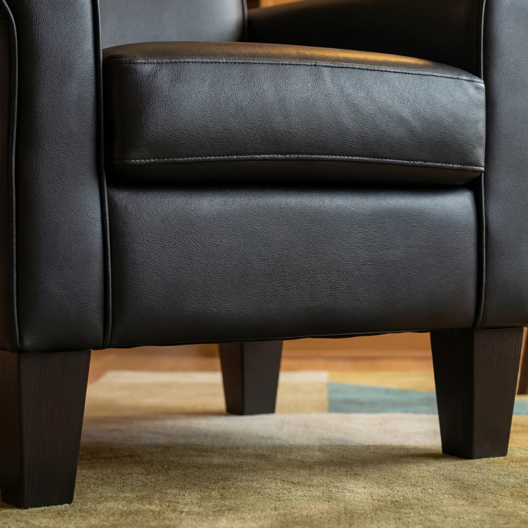 - Easy-clean faux leather — cozy touch, spot clean quickly