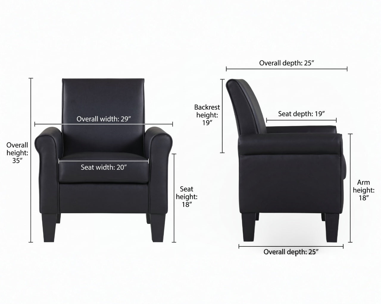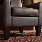 A comfortable accent chairs for small living rooms and apartment. 28.5 inches wide, with a faux leather upholstery and solid wood legs. Priced between $100 and $199, it offers the best value.
