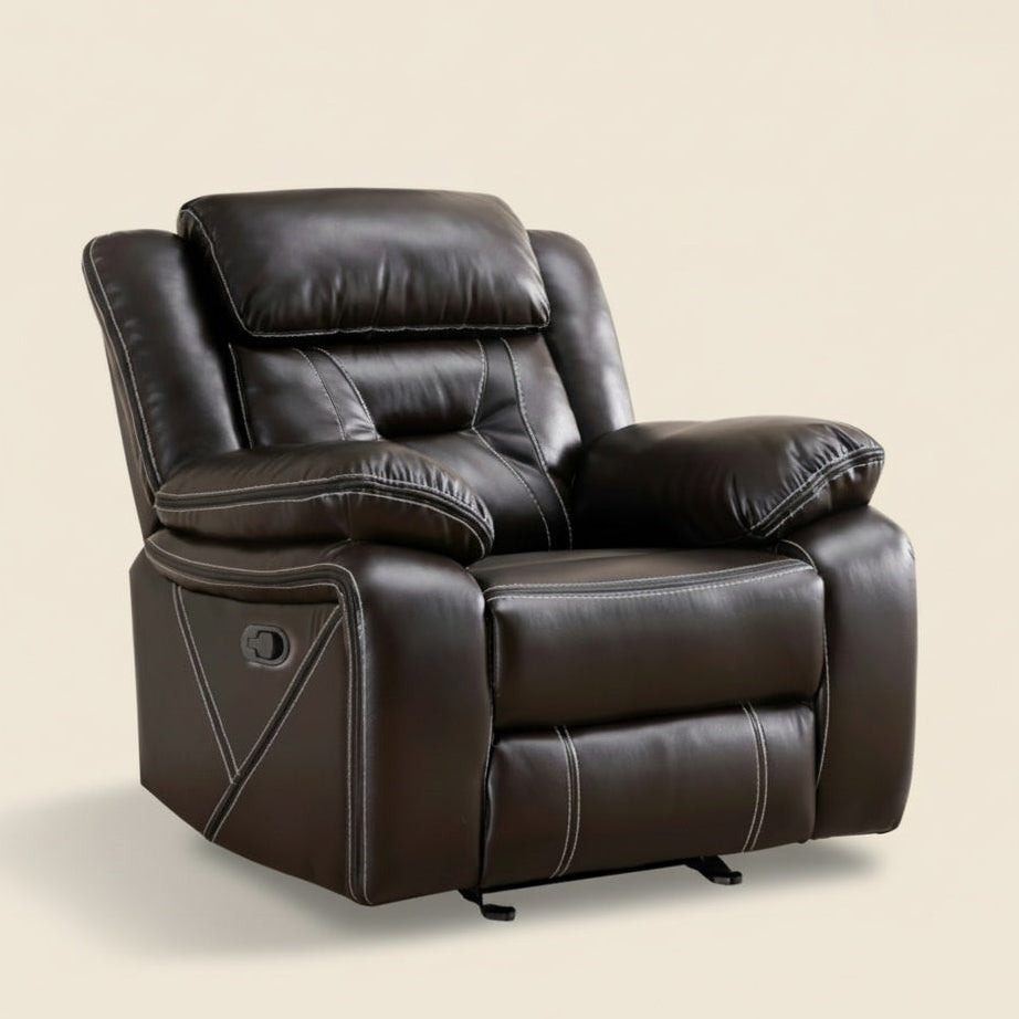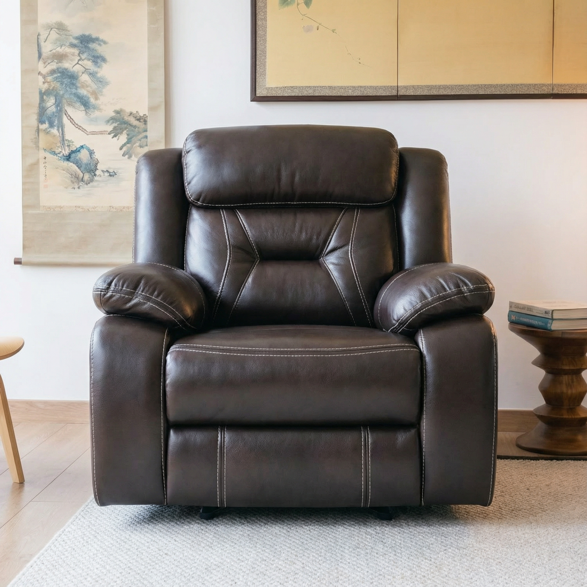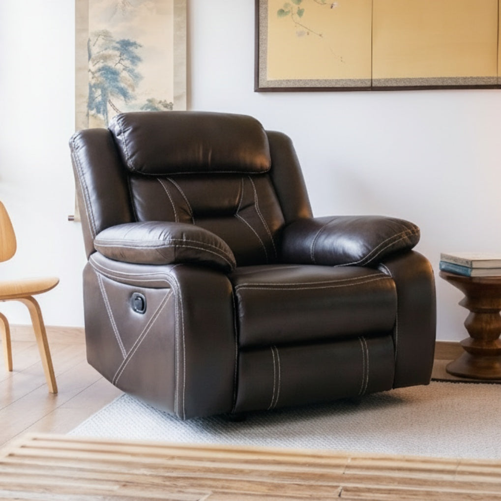 This Manual Rocking Recliner Chair is designed for everyday comfort, providing a calm and reliable spot for relaxation in any modern apartment. Combining a restrained aesthetic with durable brown PU leather, this Manual Rocking Recliner Chair fits seamlessly into your living room or reading corner.
