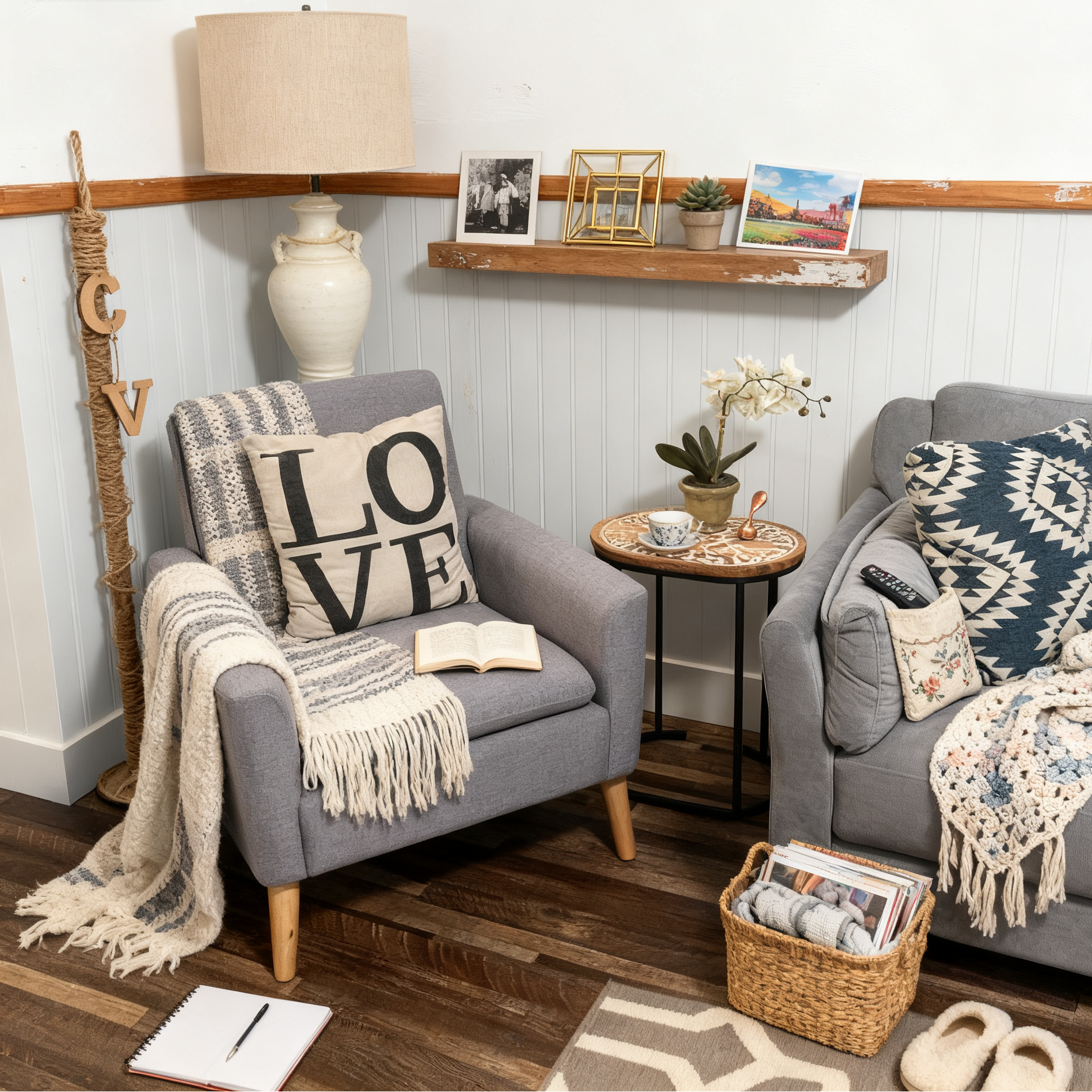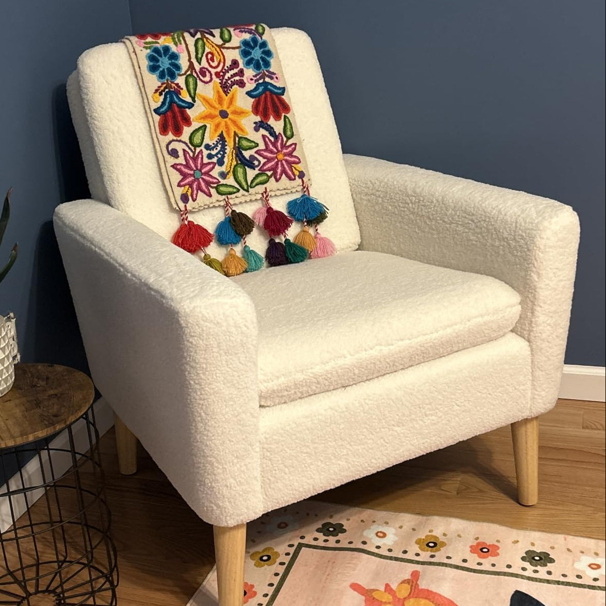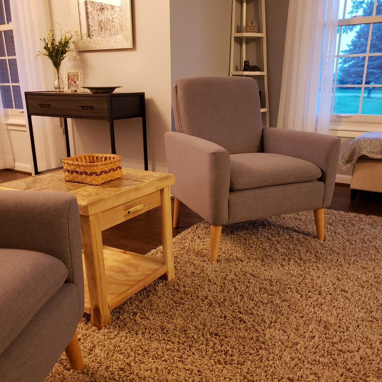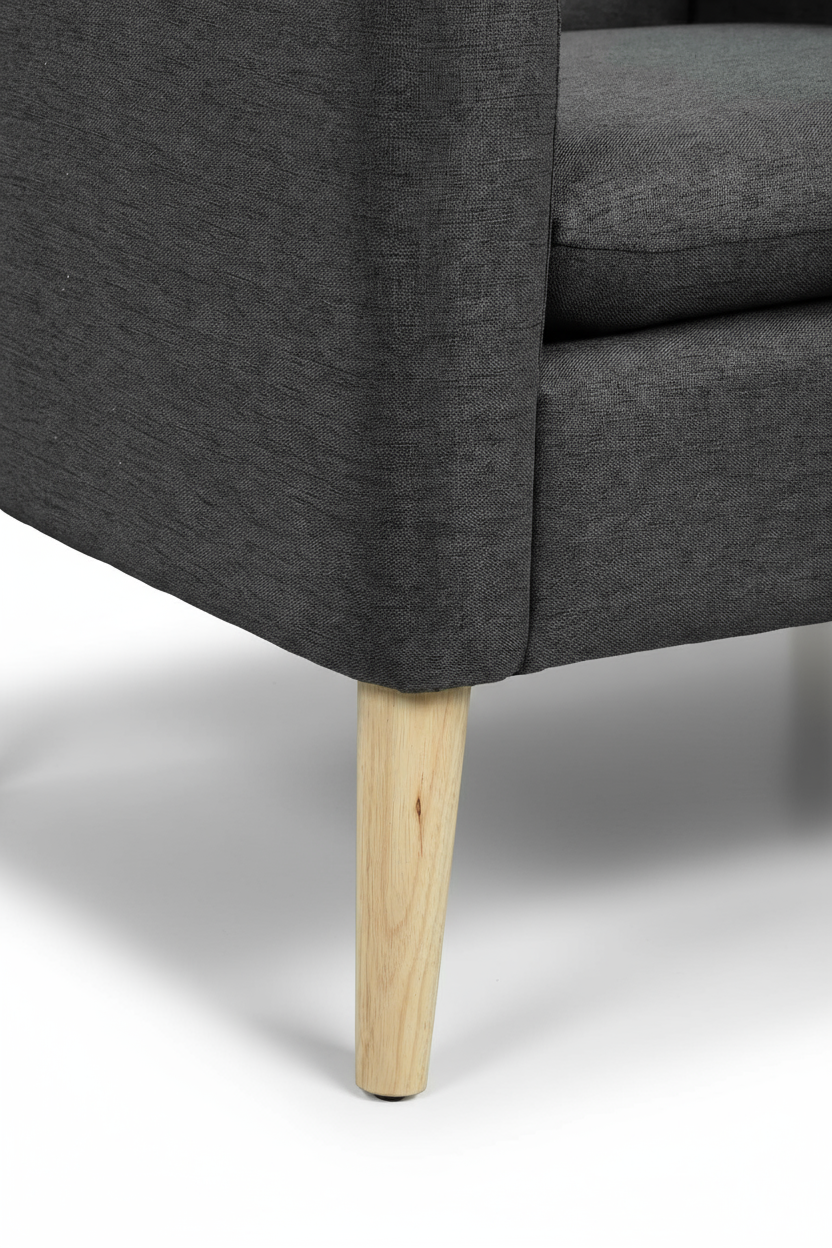 comfort and textural depth. - Solid wood legs — All wood was hand-sanded multiple times.