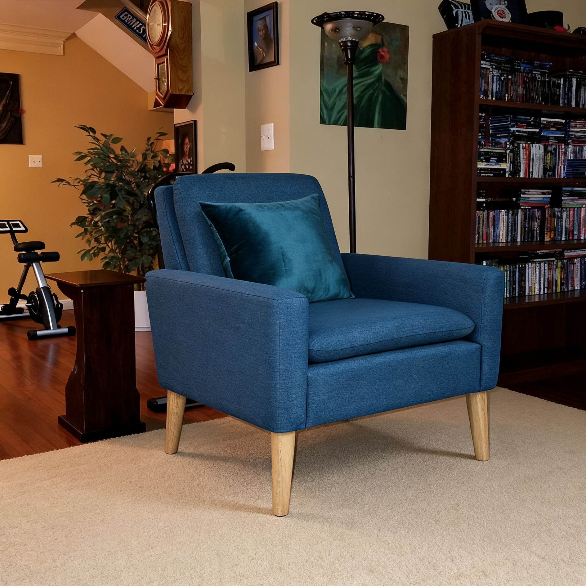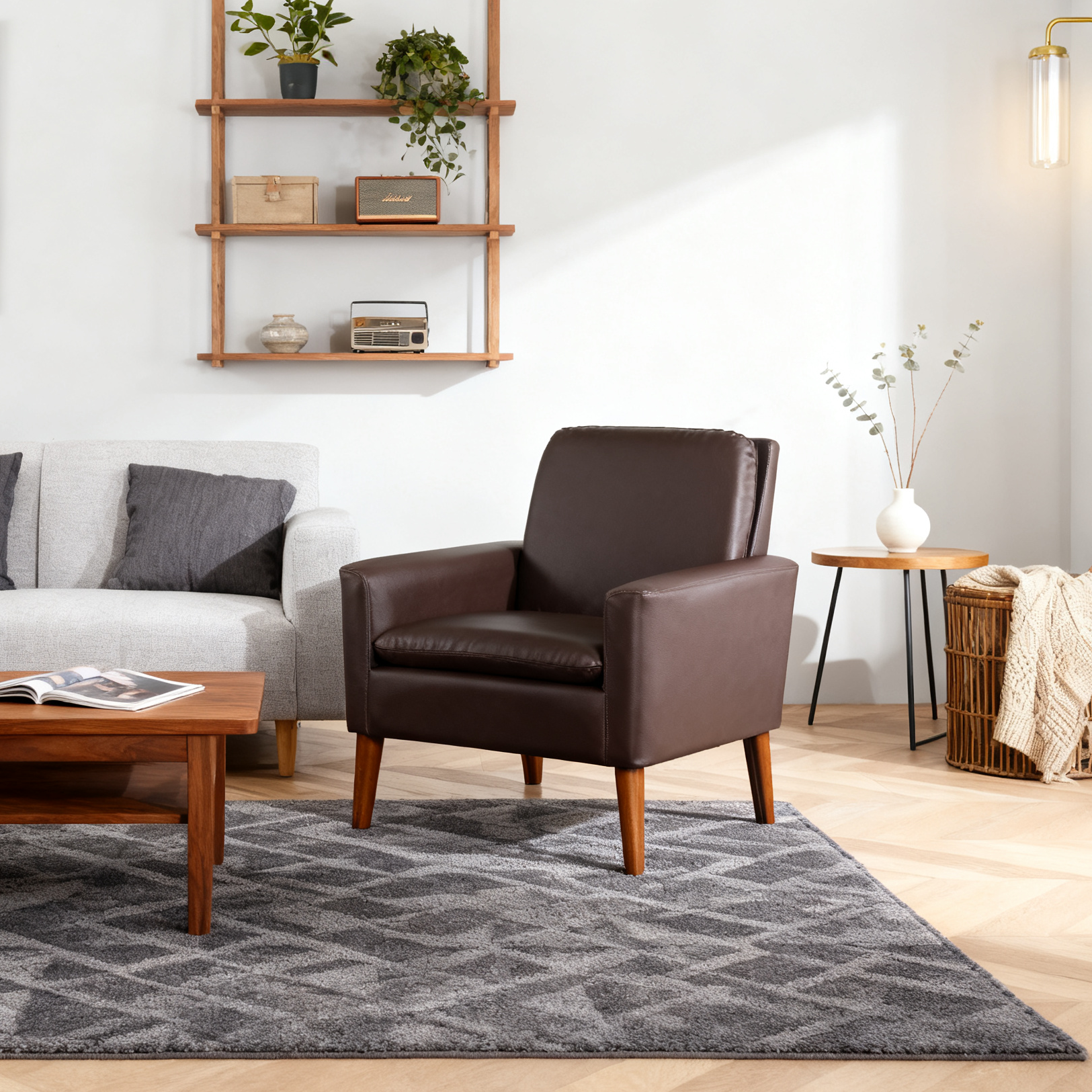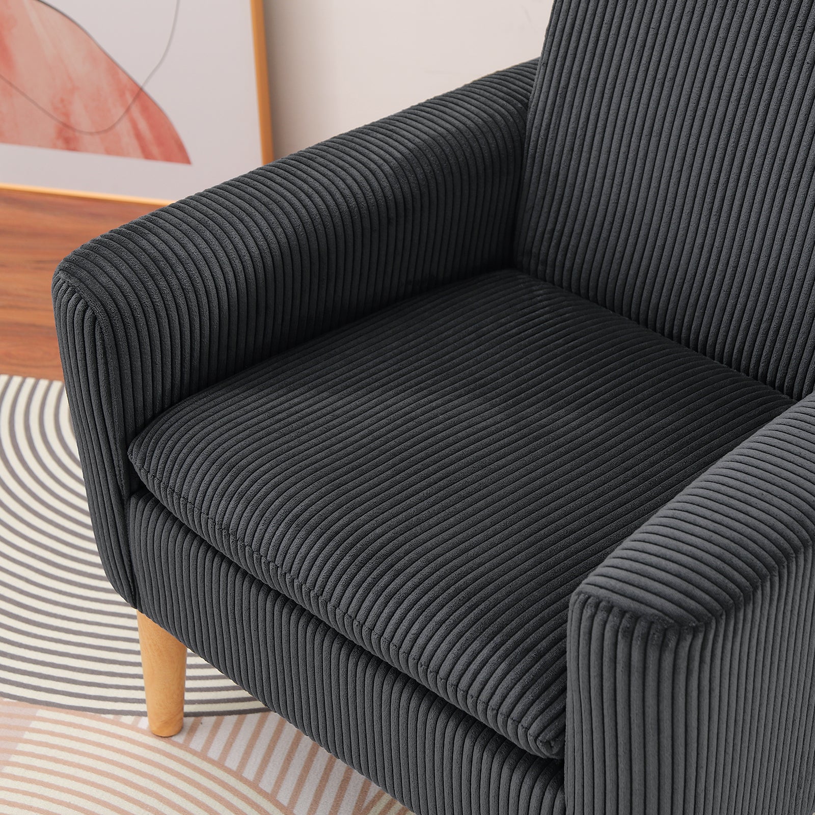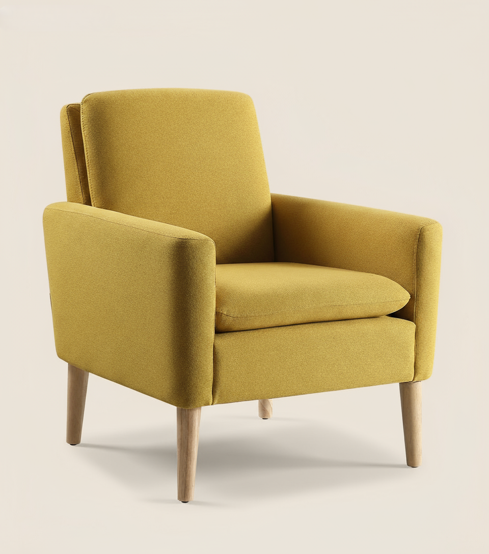 Bring instant comfort and style to any corner with this modern minimal accent chair. The breathable seat and good material make long reading or coffee chats comfortable.Solid wood legs add warmth and stability.
