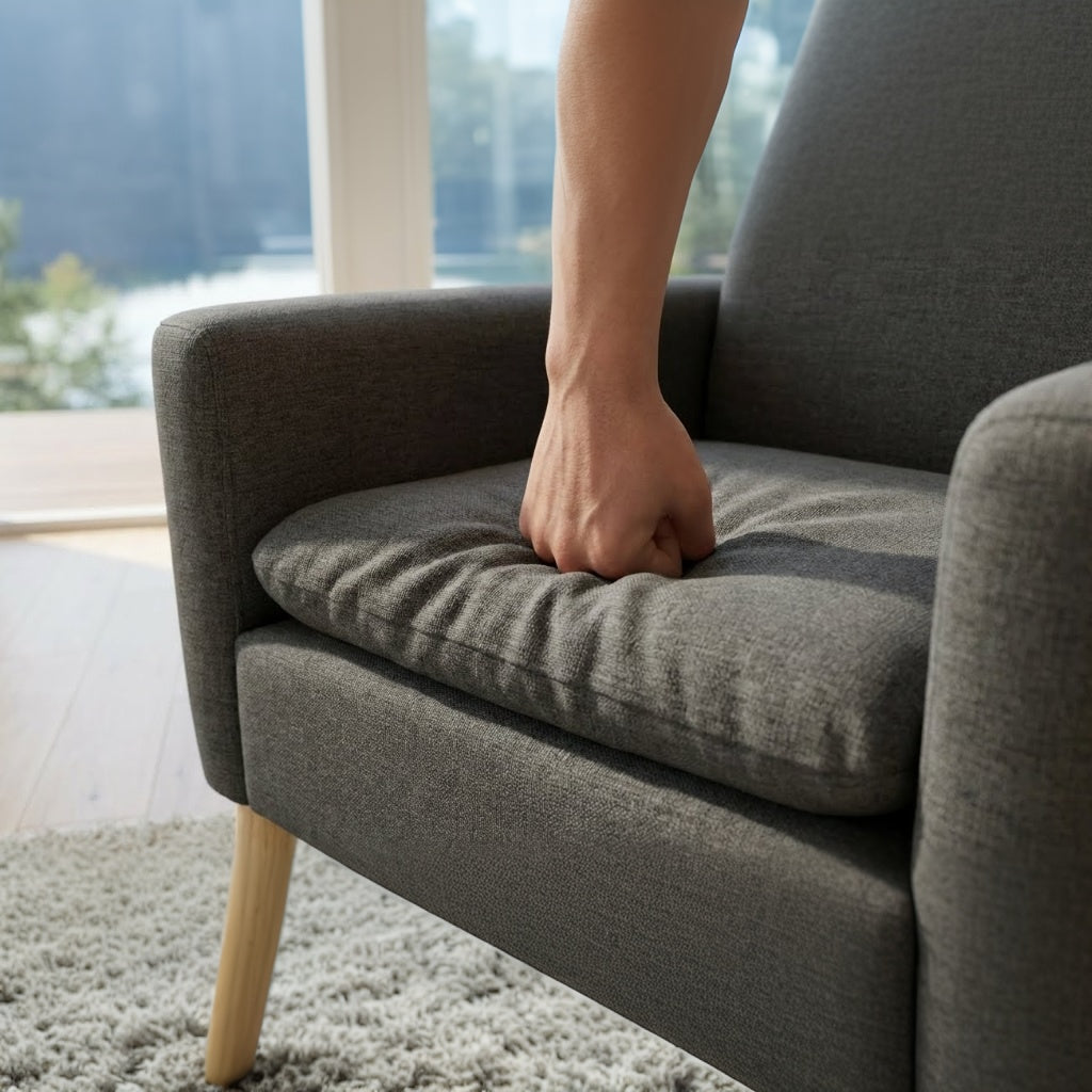- Soft, breathable upholstery — cotton linen fabric with airy comfort and textural depth