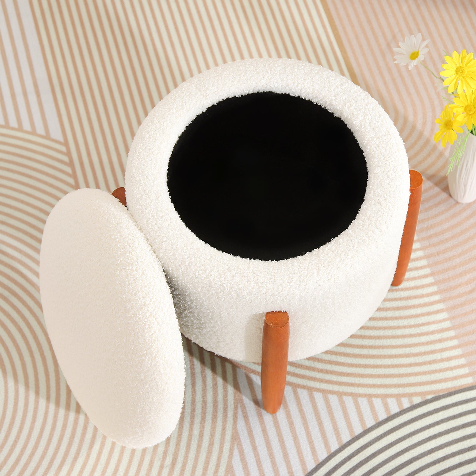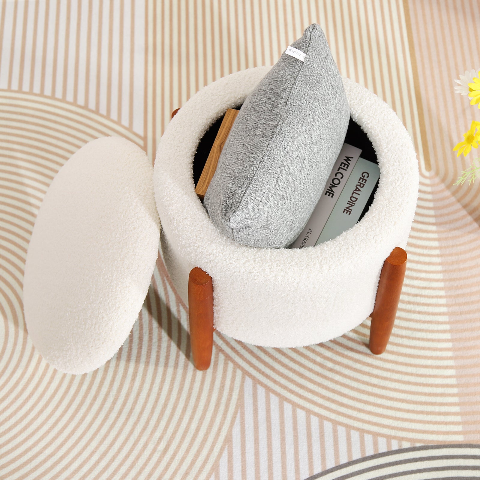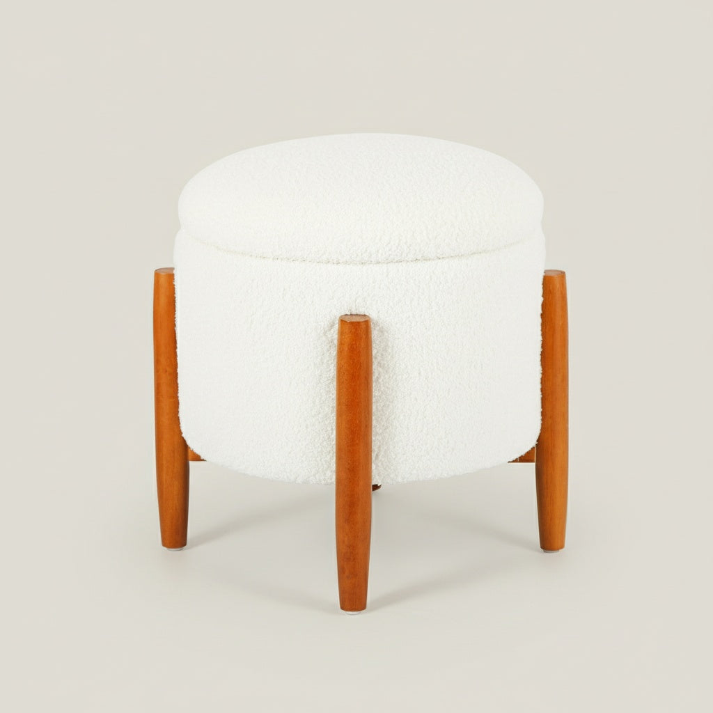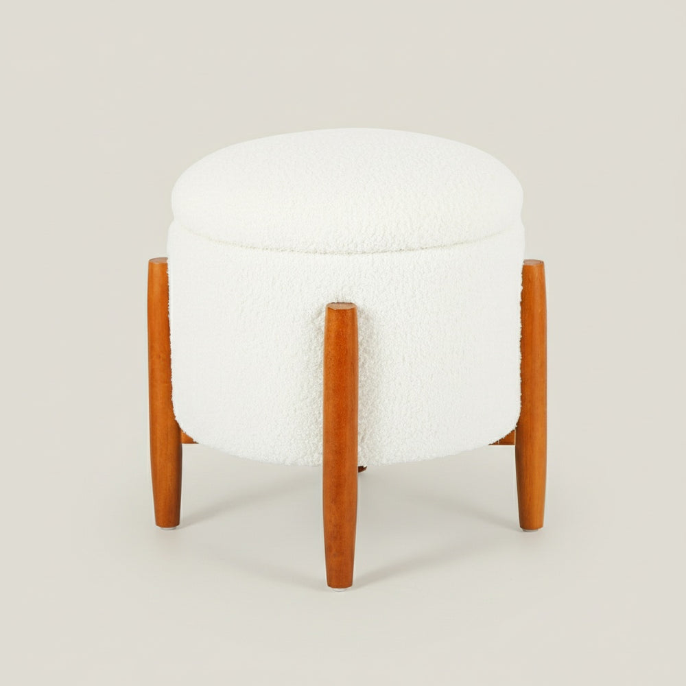 Teddy Velvet Storage Round Stool with Solid Wood Legs – Compact Ottoman for Living Room or Bedroom