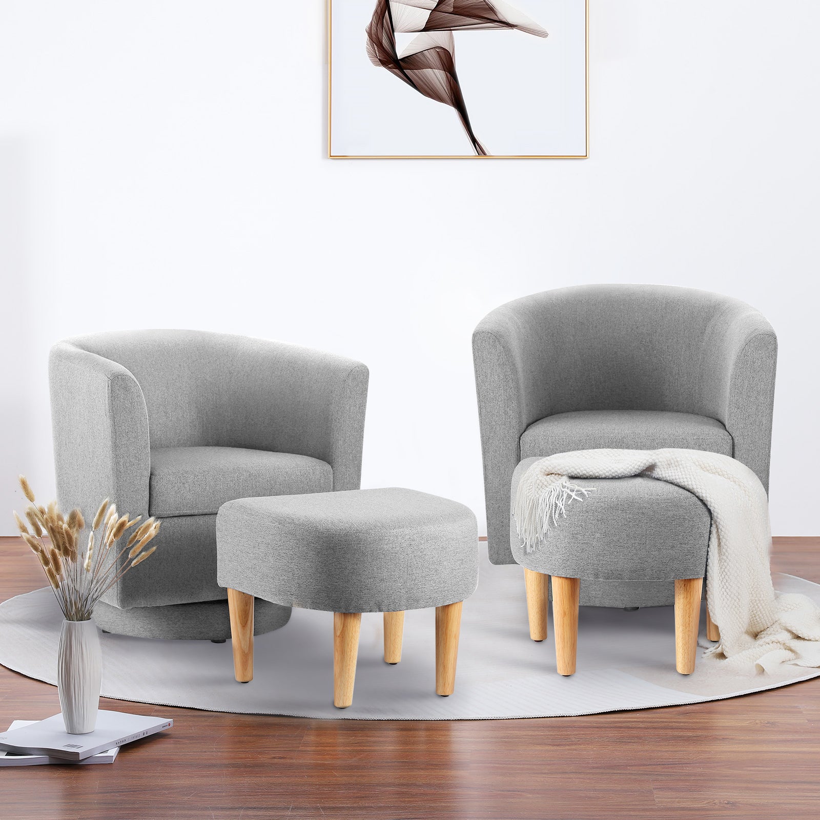 Set of 2 Swivel Accent Chair with Ottoman Grey 360 Degree Swive Chair