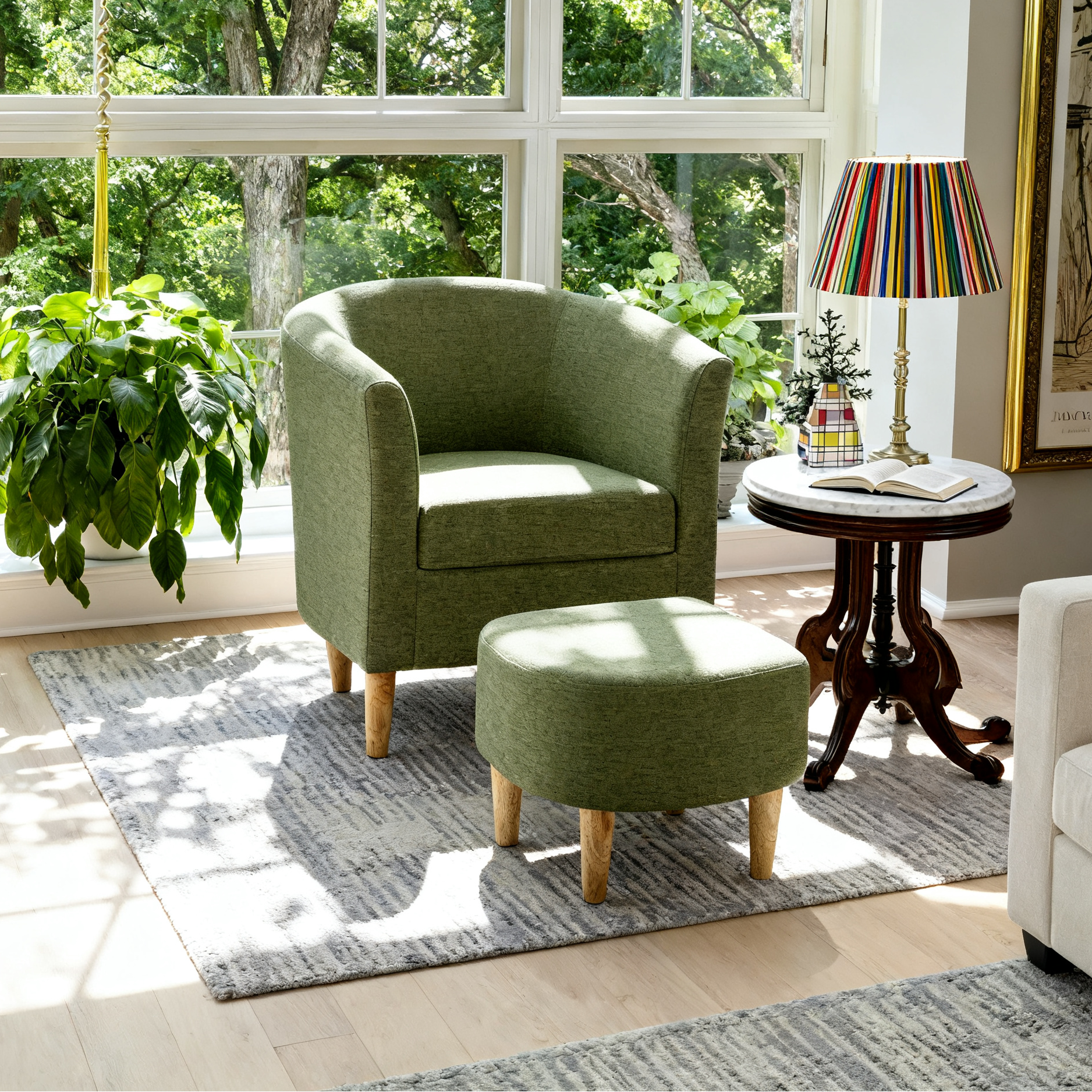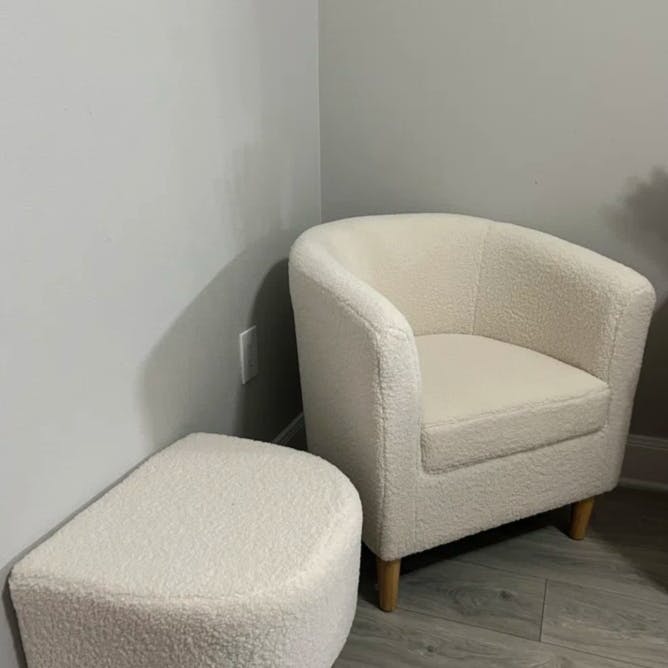 - Matching ottoman — prop your feet or use as extra seat