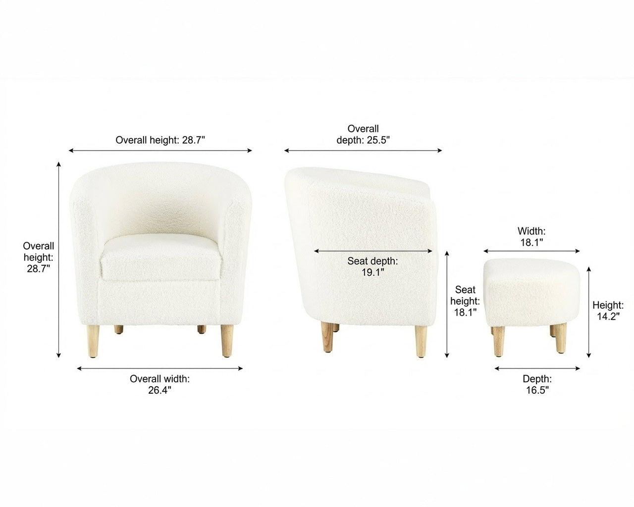 Ottoman Overall Dimensions W 18.1" × D 16.5" × H 14.2"