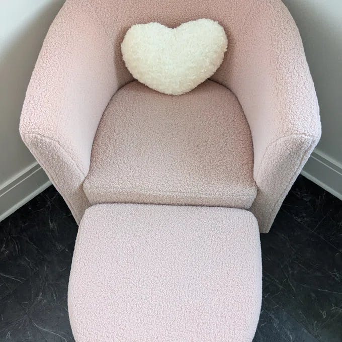 - Soft sherpa upholstery — cozy, easy to spot clean