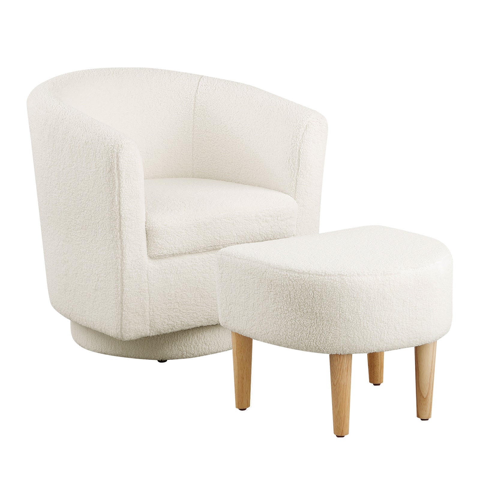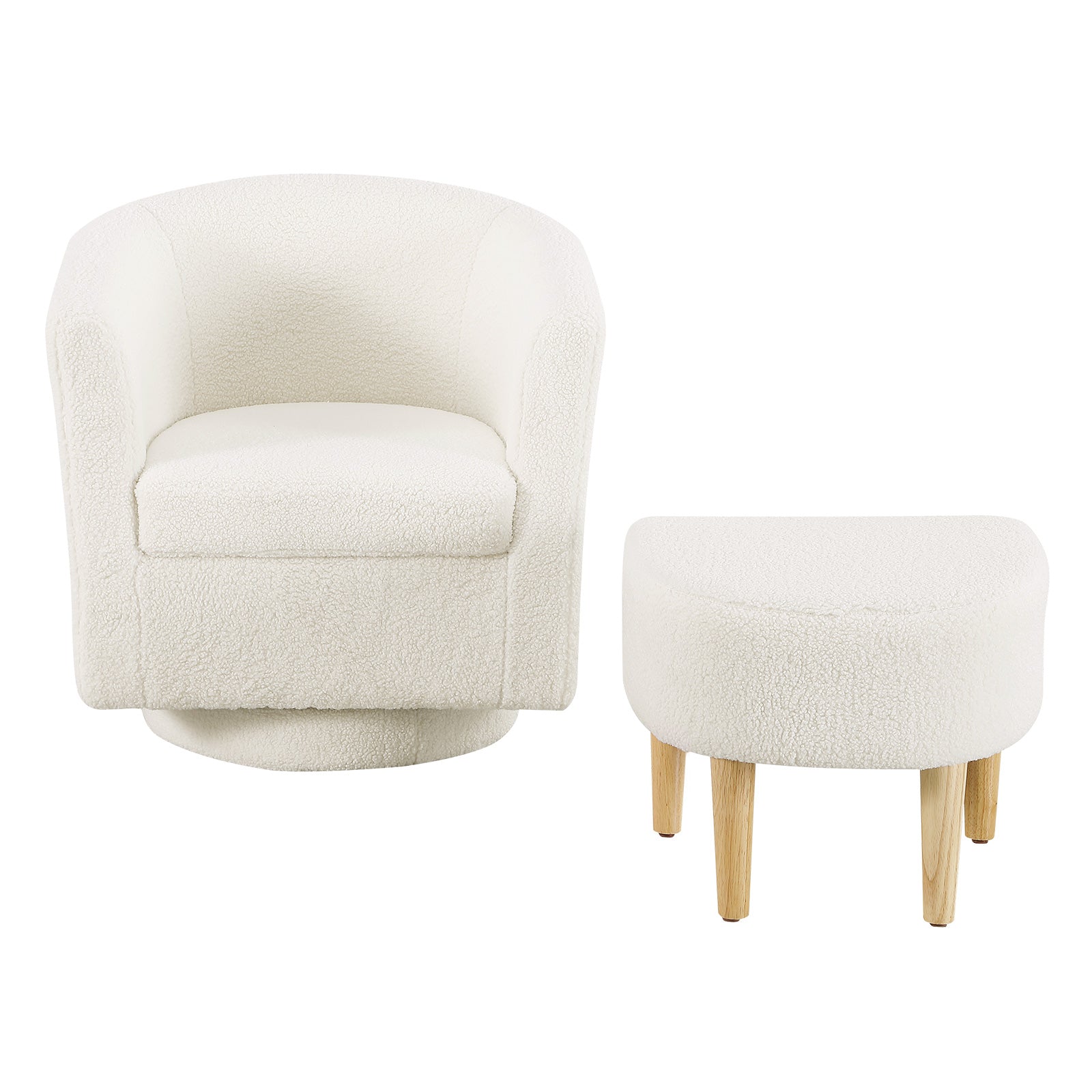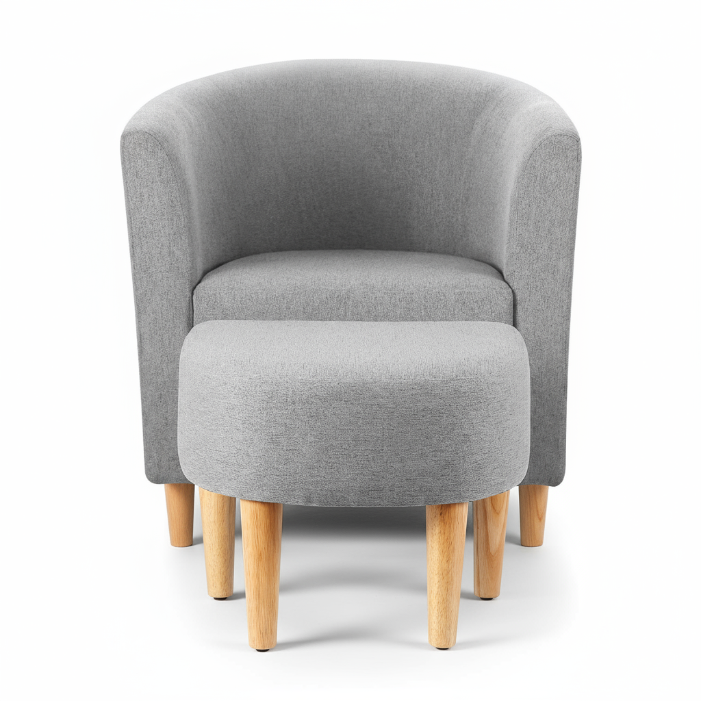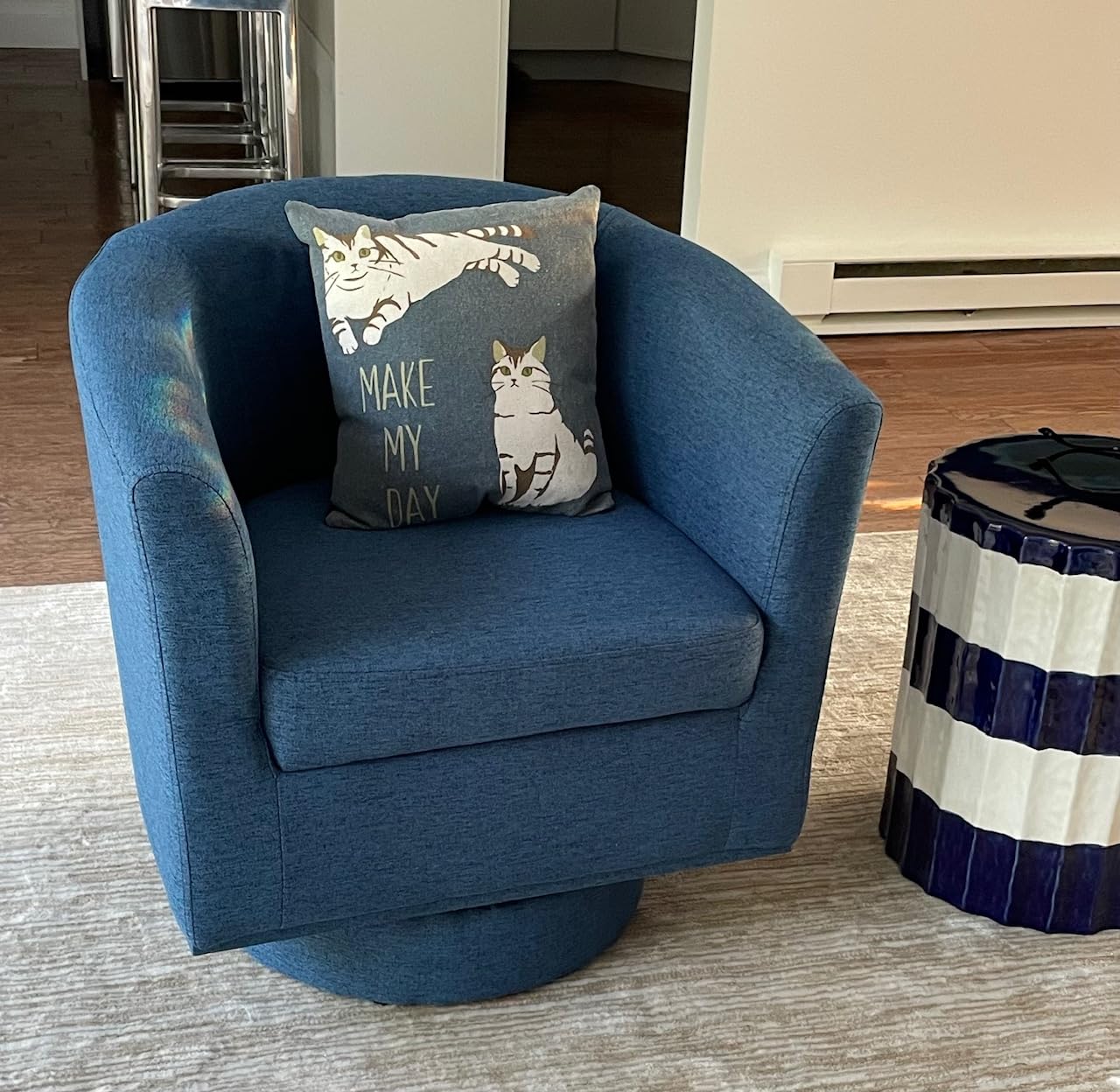 A compact swivel accent chair with matching ottoman—made for small living rooms and apartments. At 27.5" wide, it saves space while delivering lounge-level comfort for reading corners and TV time. Linen-blend upholstery and solid wood legs keep it durable and easy to style.