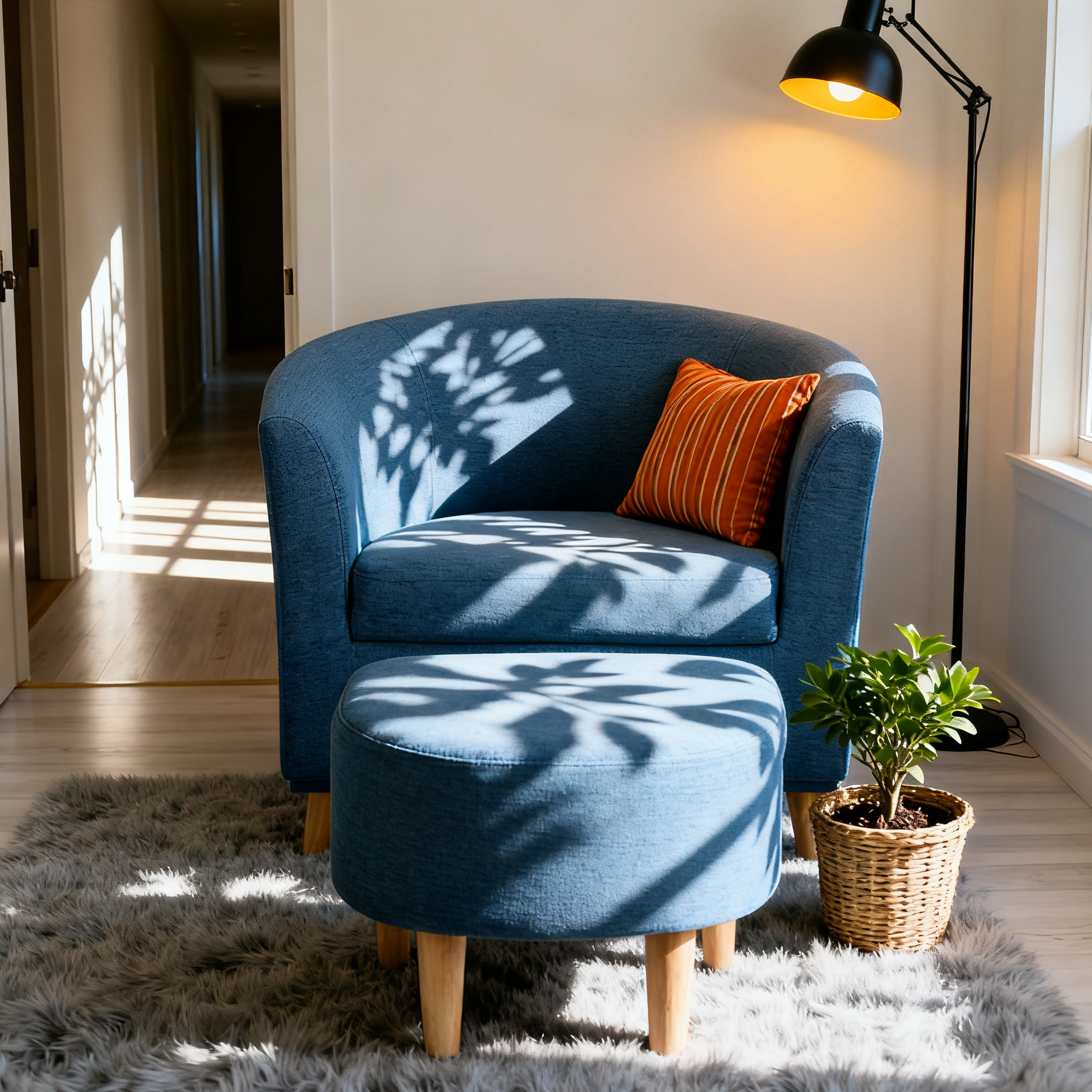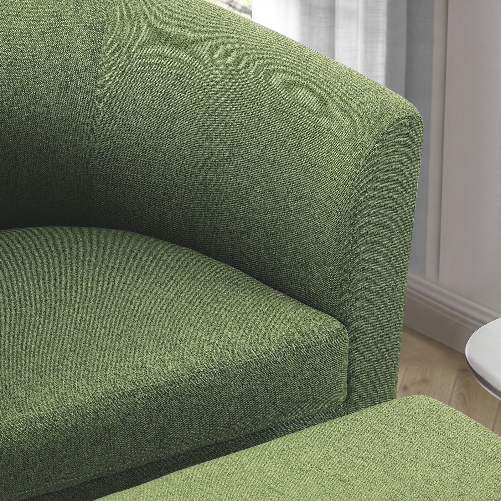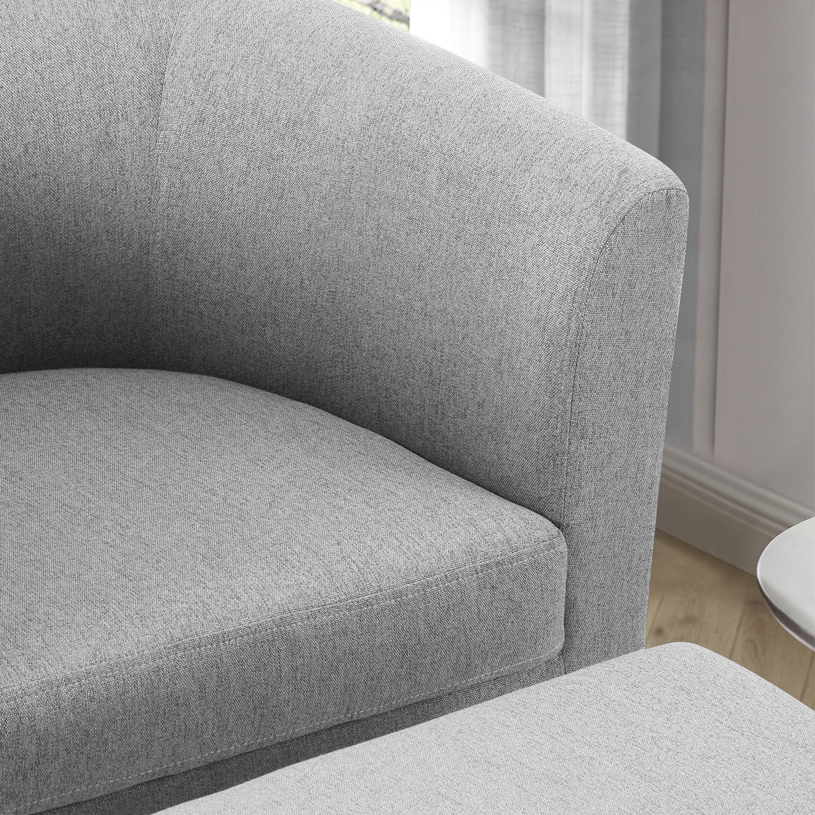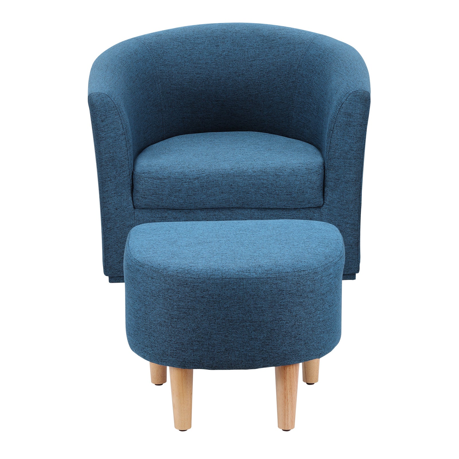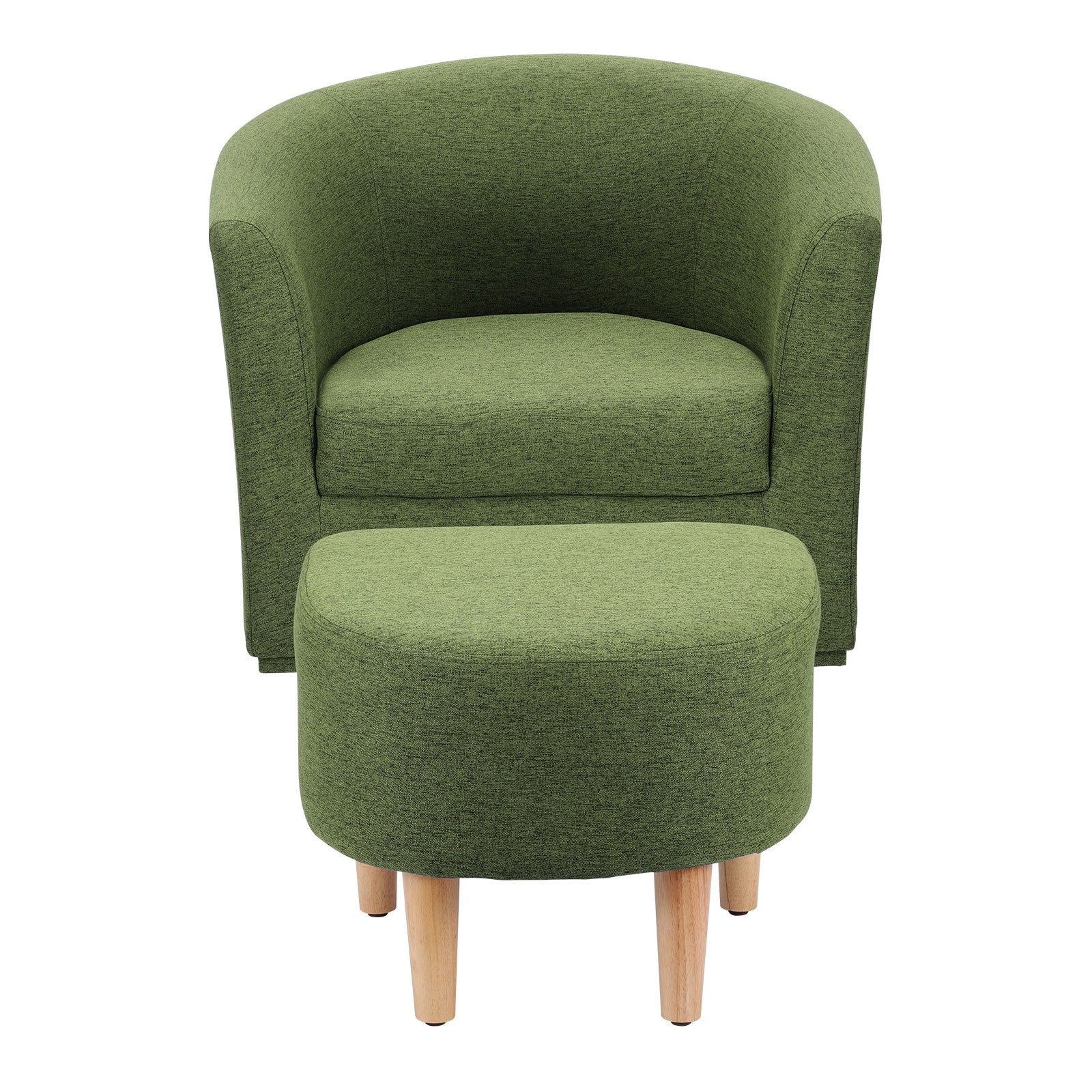 A compact swivel accent chair with matching ottoman—made for small living rooms and apartments. At 27.5" wide, it saves space while delivering lounge-level comfort for reading corners and TV time. Linen-blend upholstery and solid wood legs keep it durable and easy to style.