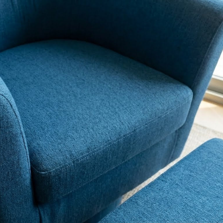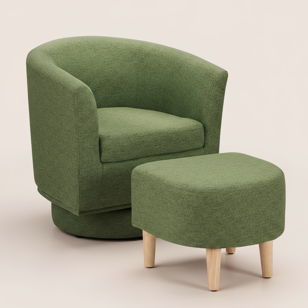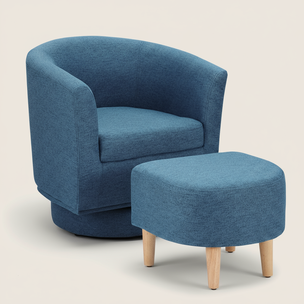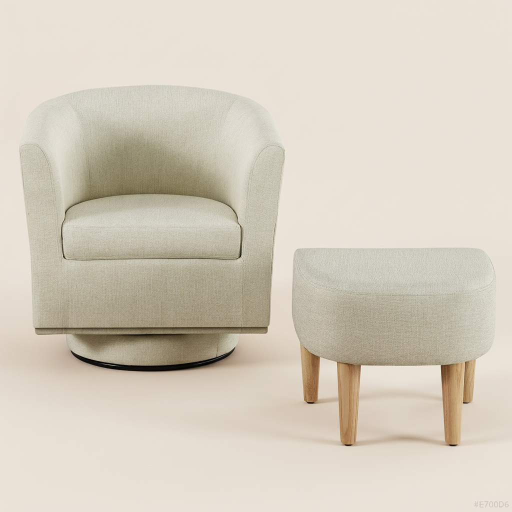 Made for everyday unwinding, this swivel accent chair turns smoothly 360° and comes with a matching ottoman for feet-up comfort. Clean lines, compact size—easy to place in a small living room, reading corner, or apartment nook.