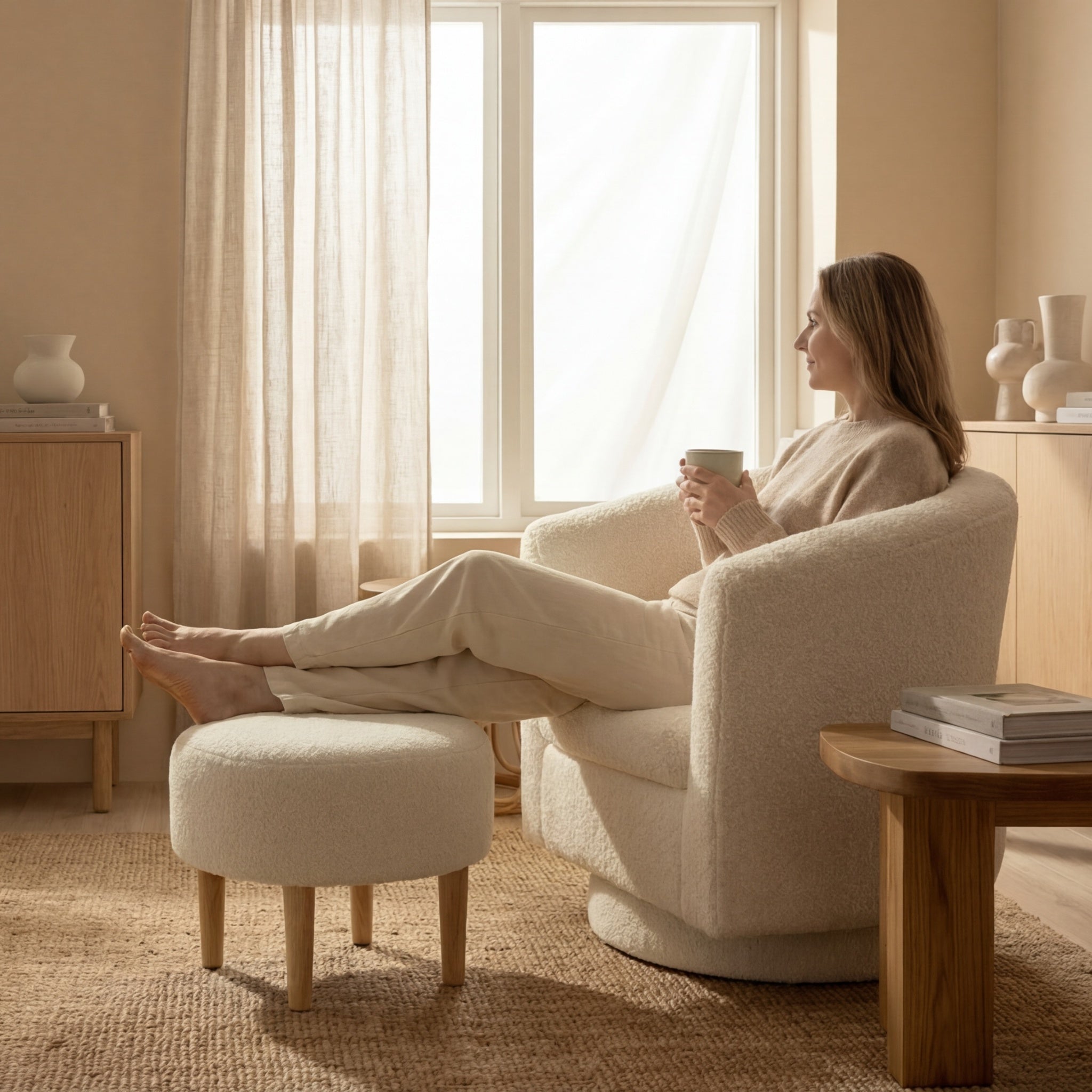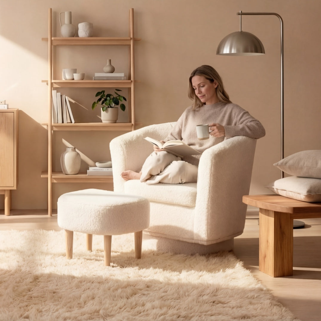 Our chairs may look like they belong in a high-end showroom, but the price stays friendly because we work directly with our own factories and sell mostly online. No big showrooms, no middlemen – just cozy, well-made chairs at a fair price.