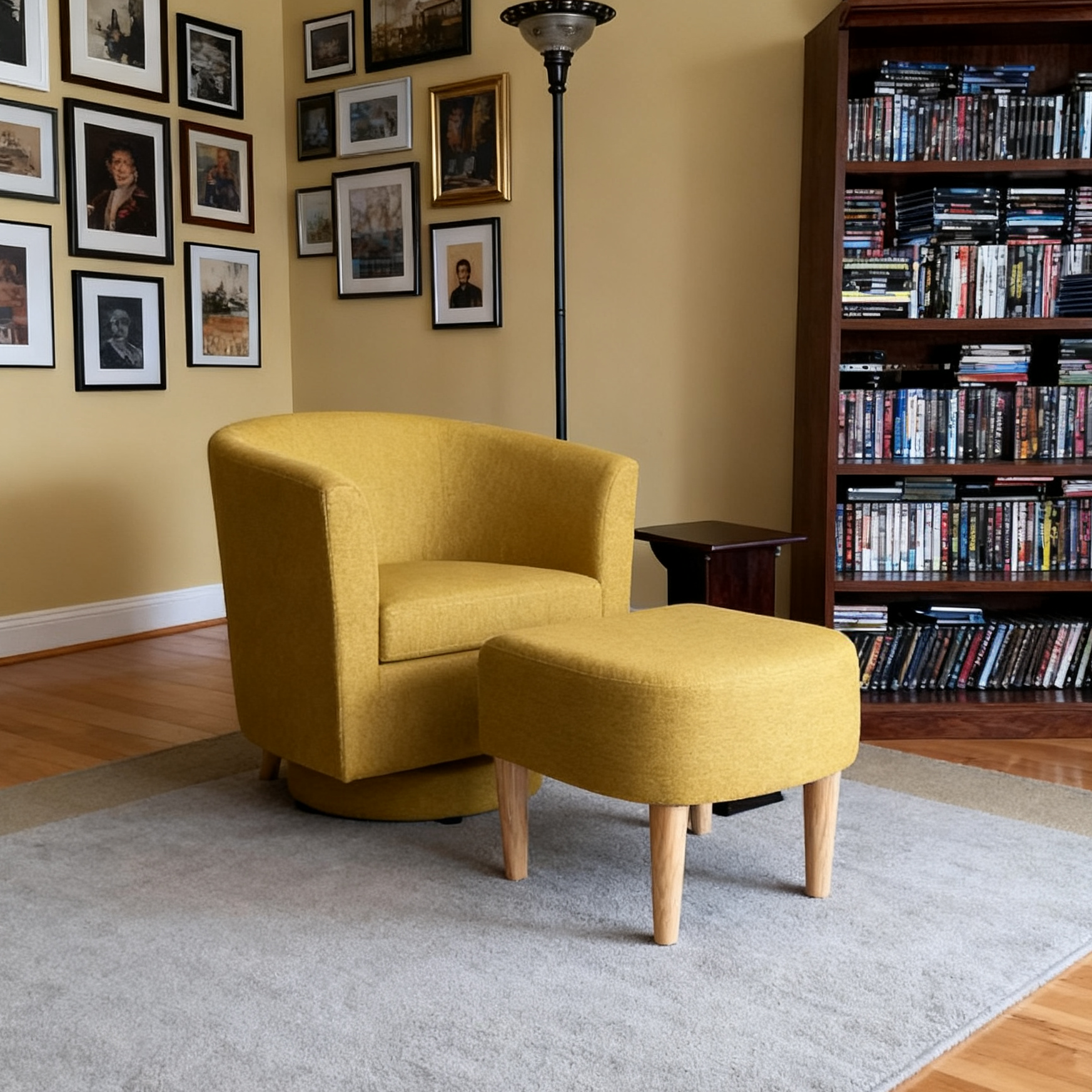Swivel Accent Chair with Ottoman – 27.5" Wide, Mustard